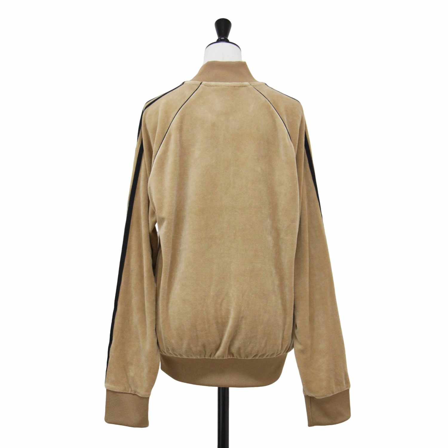 ◆ソフトで滑らかなベロア素材を使用。カジュアルなトラックトップに上品な光沢と高級感