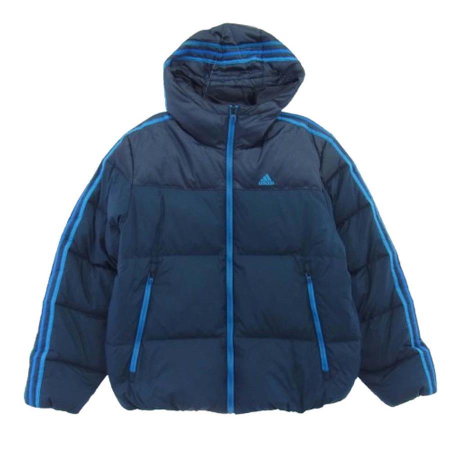 ネイビー系【モデル】3ストライプ サイドライン フーデッド ダウンジャケット