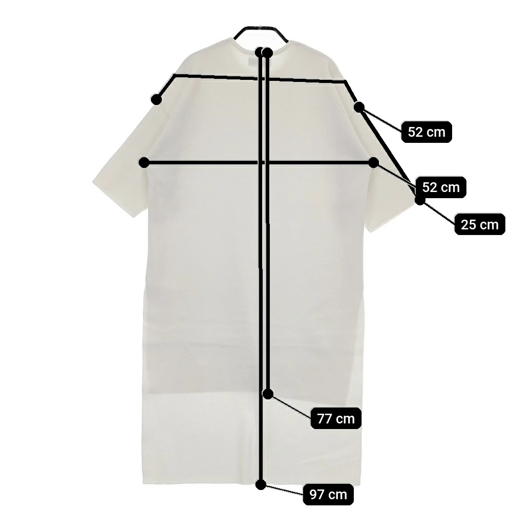 | 実寸サイズ | 肩幅:約52cm 着丈:約97cm 着丈(前):約77cm 身幅:約52cm 袖丈:約25cm ※記載以外のサイズが合わないことを理由とした返品はできませんので、 記載部分以外で実寸サイズの気になる箇所があれば必ず購入前にご質問ください。 |