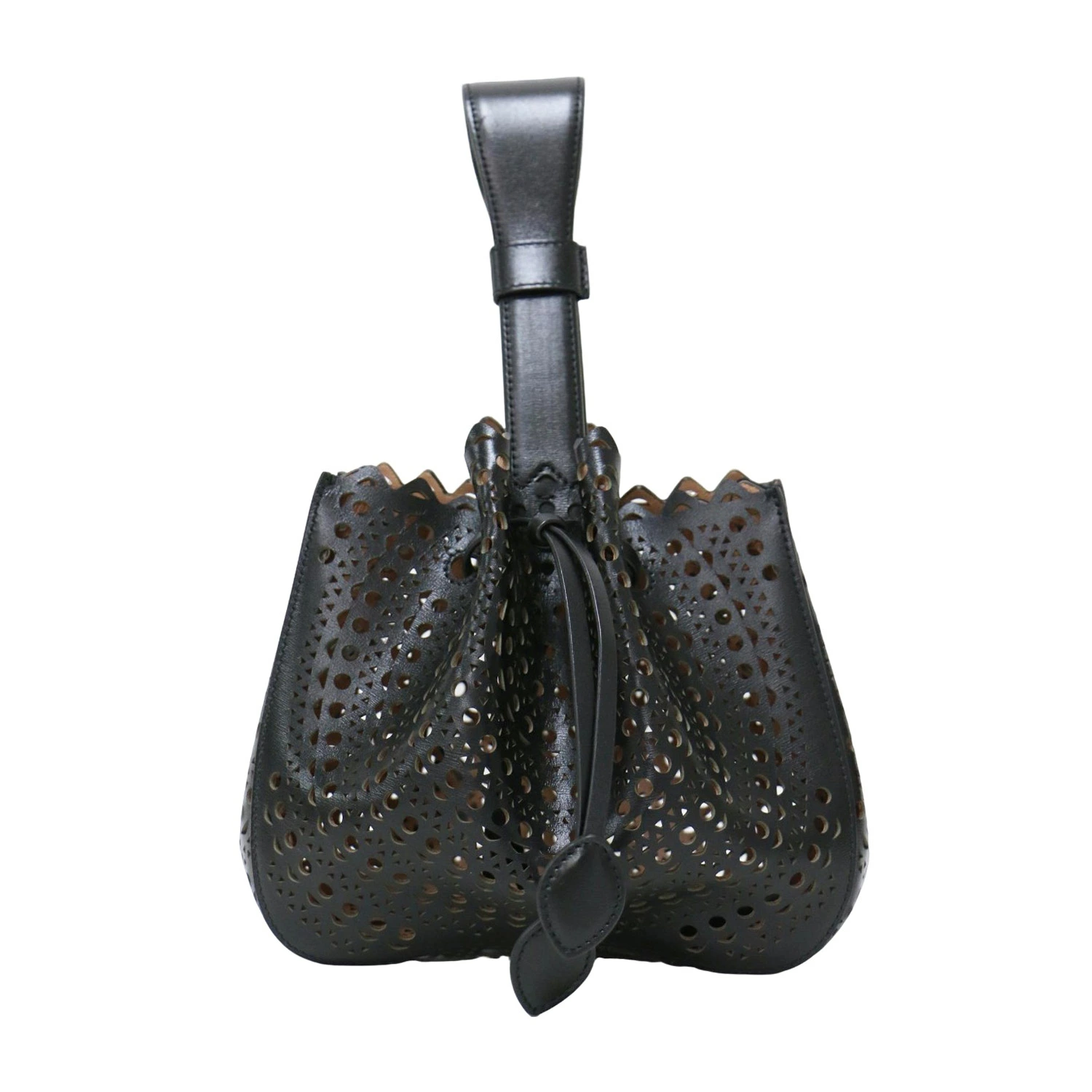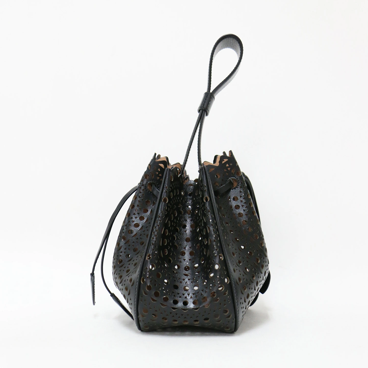 | 商品説明 | ・付属ミラー付き ・巾着開閉式 ・レース模様のカッティングレザー |
