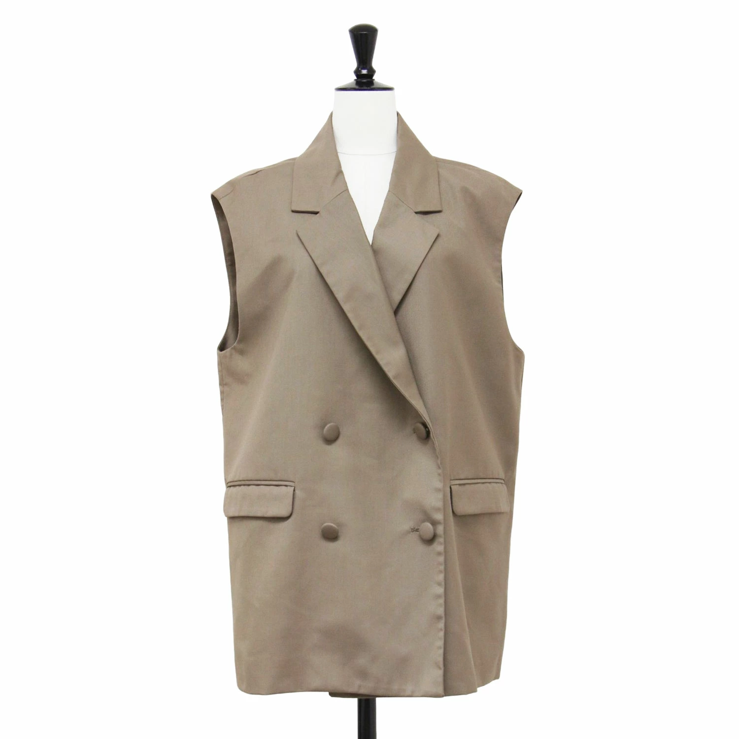 AMERI Vest, Brown, Size: Free | Fall/Winter 2021 Walnut Button Double-Breasted Tailored Vest/Gilet | Mutually Hooded Vest | Mid-Length, Wide Slit | Women's Top | Pre-owned | K4641