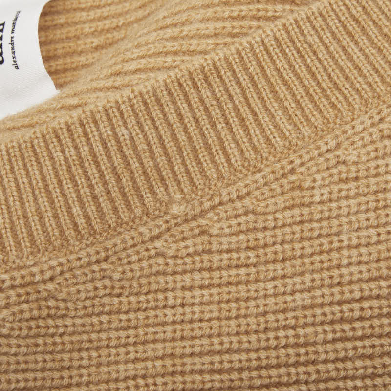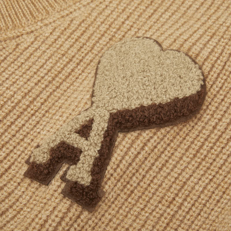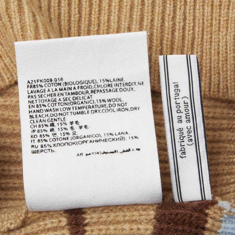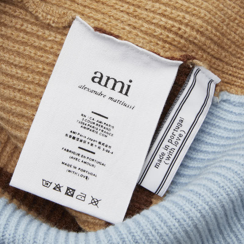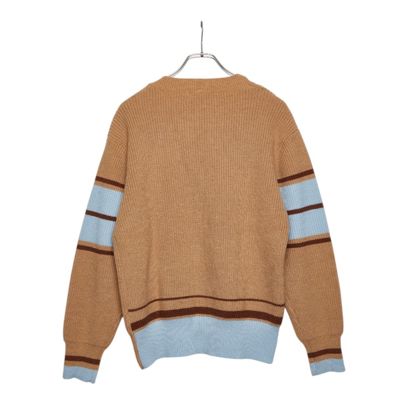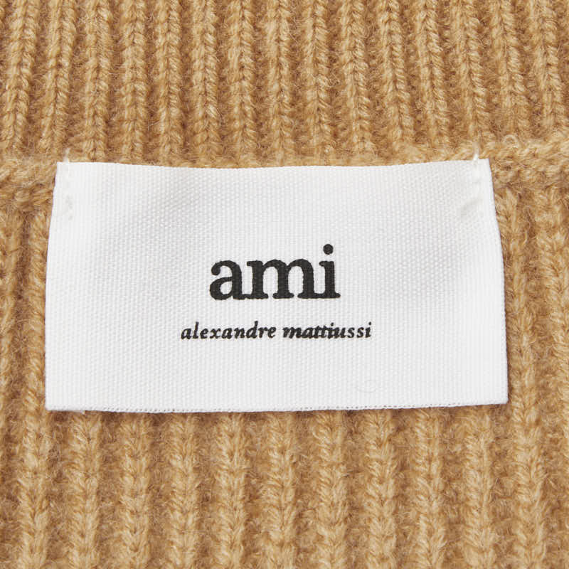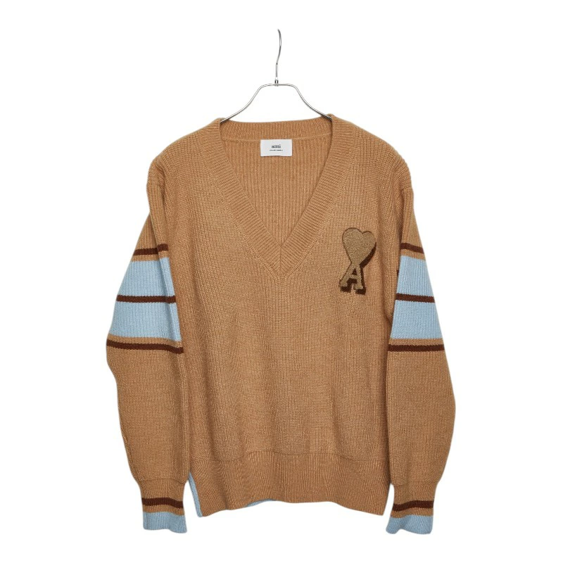 - Ami Paris アミ パリス Vネック リブ ニットセーター サイズ M ベージュ ブルー コットン ウール レディース 【中古】