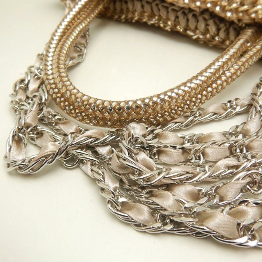| 商品説明 | | 取扱店舗 | 新富町店 (TEL049-229-2700) | | 状態 | 中古ABランク | | 素材 | ワイヤーコード | | 色 | ゴールド / シルバー金具 | | サイズ | W23/26cm×H21cm×D2cm [ショルダー]約39cm [ショルダー]約62cm