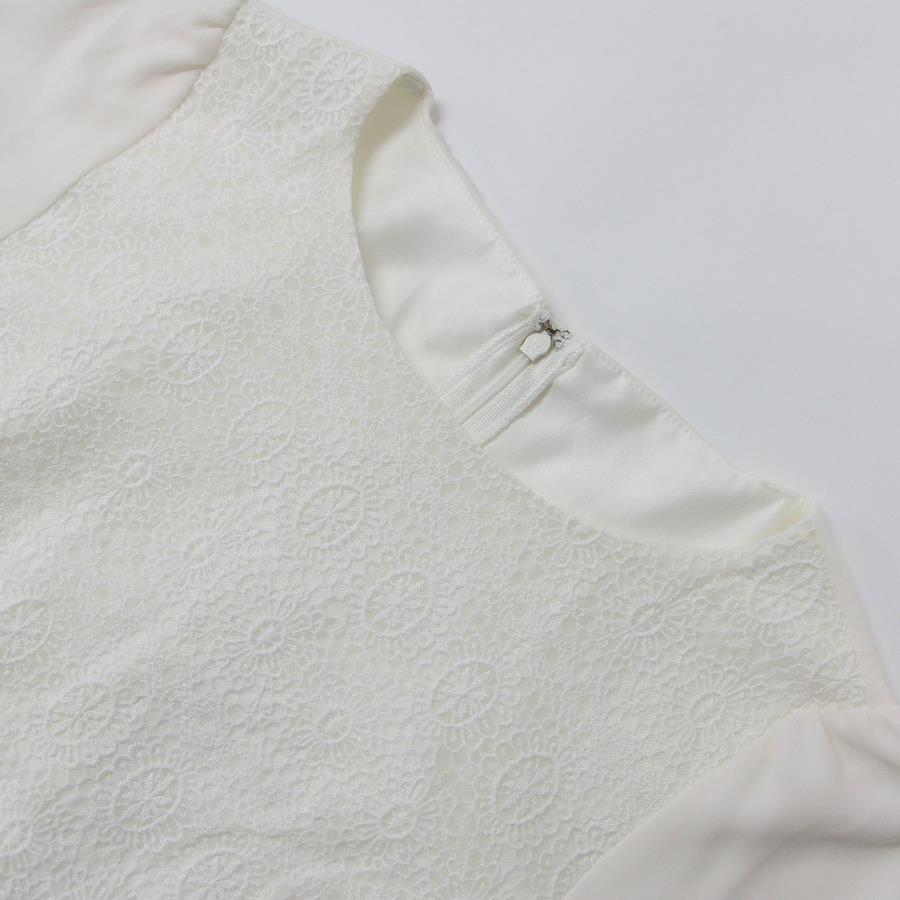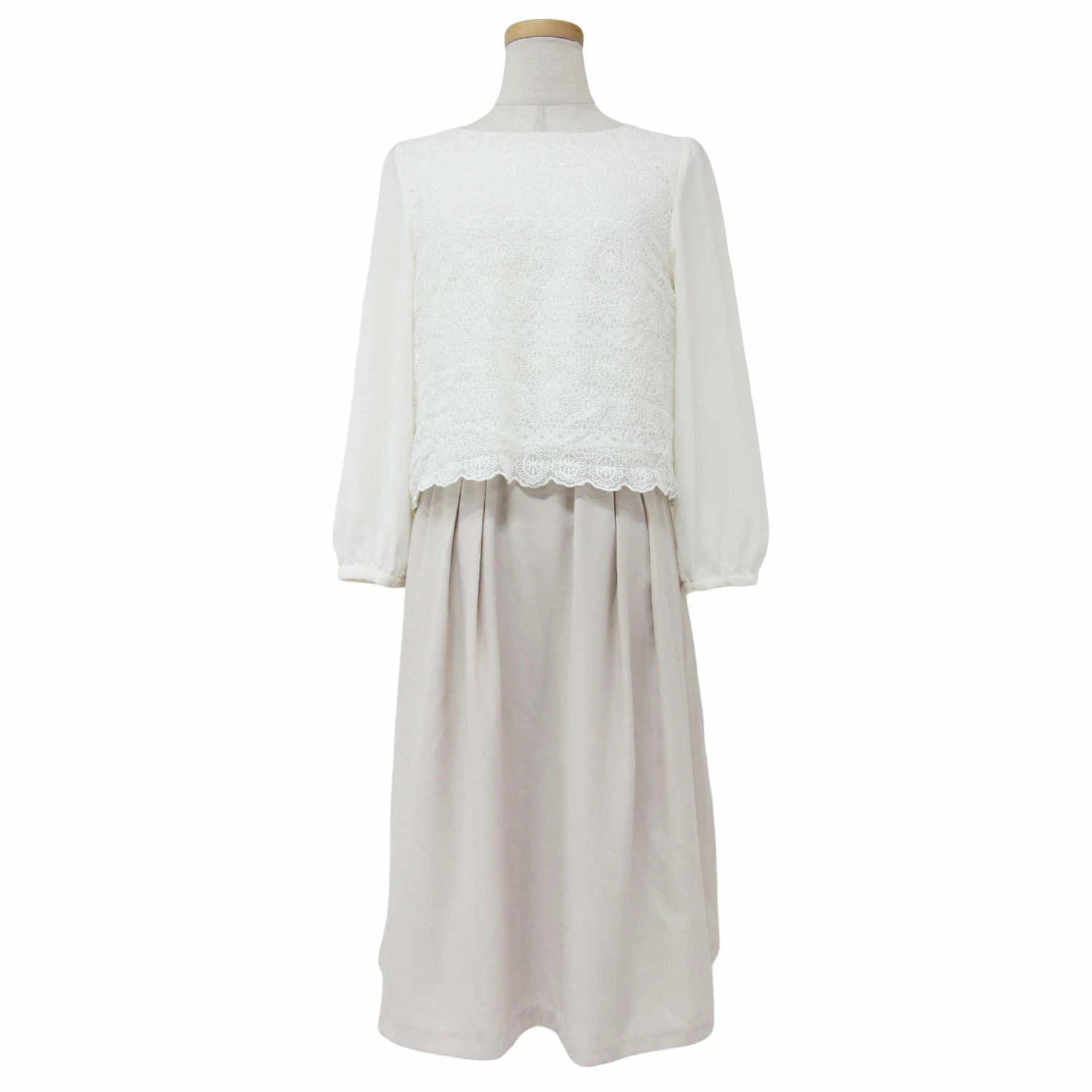 | 商品説明 | ・レースコンビワンピース ・ウエストゴム入り ・後ろファスナー付き ・袖部分透け感あり |