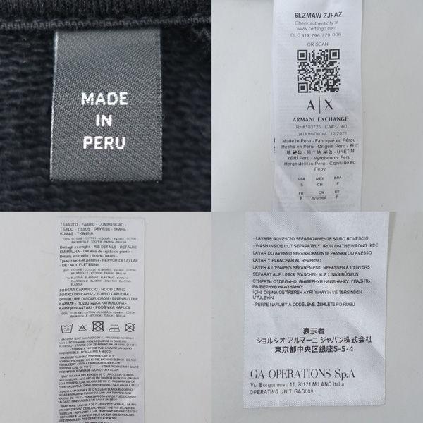 ・メーカー :ARMANI EXCHANGE / アルマーニエクスチェンジ・製品型番 :6LZMAW ZJFAZ・サイズ :表記サイズ:S,肩幅 (約cm):46,身幅 (約cm):50,着丈 (約cm):68,袖丈 (約cm):64,・色(柄)の系統:ブラック・デザイン :(メンズ)トップス/パーカー・素材 :コットン99% ポリウレタン1%