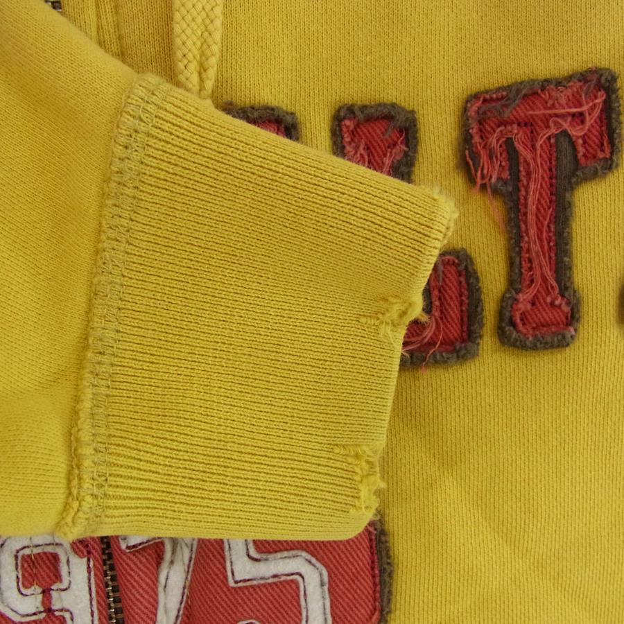 イエロー系【モデル】ワッペン カレッジロゴ 内ボア付 ユーズド加工 内ボア付 ジップアップ スウェット パーカー