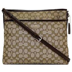 コーチ ショルダーバッグ ec-21378 ベージュ ブラウン シグネチャー F11193 美品 斜め掛け キャンバス レザー 中古 COACH 総柄 ホック 軽い 肩掛け ロゴ 定番 人気 女性 レディース 通学 通勤 鞄 お洒落 革