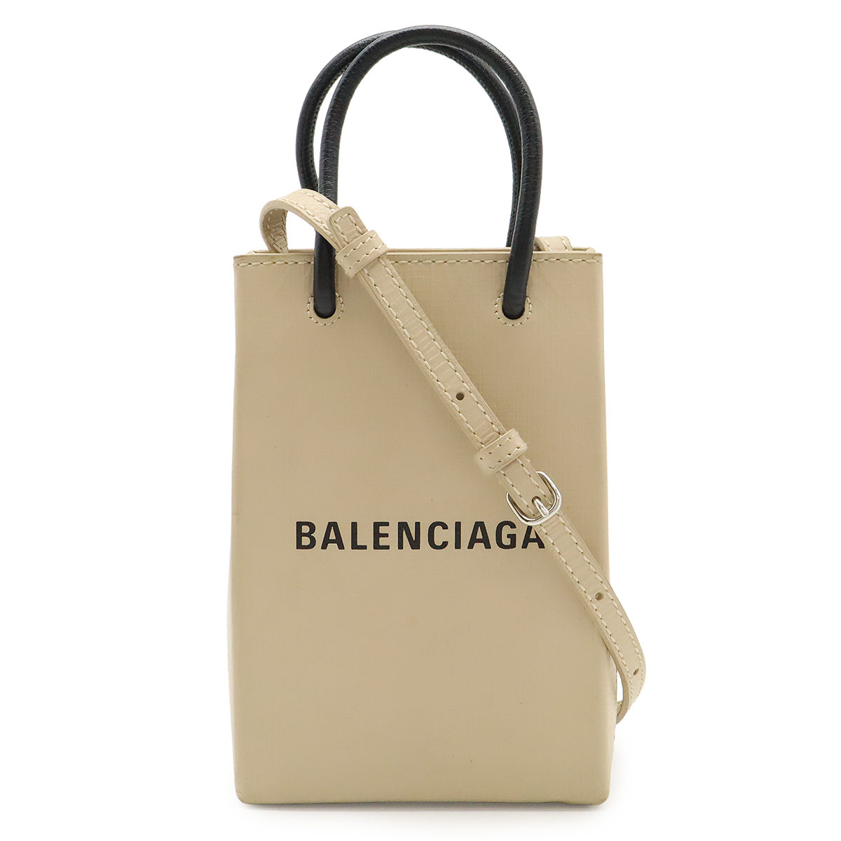BALENCIAGA Shopping Phone Holder Mini Bag Shoulder Bag Pochette Smartphone Case Small Accessory Case Leather Beige 593826