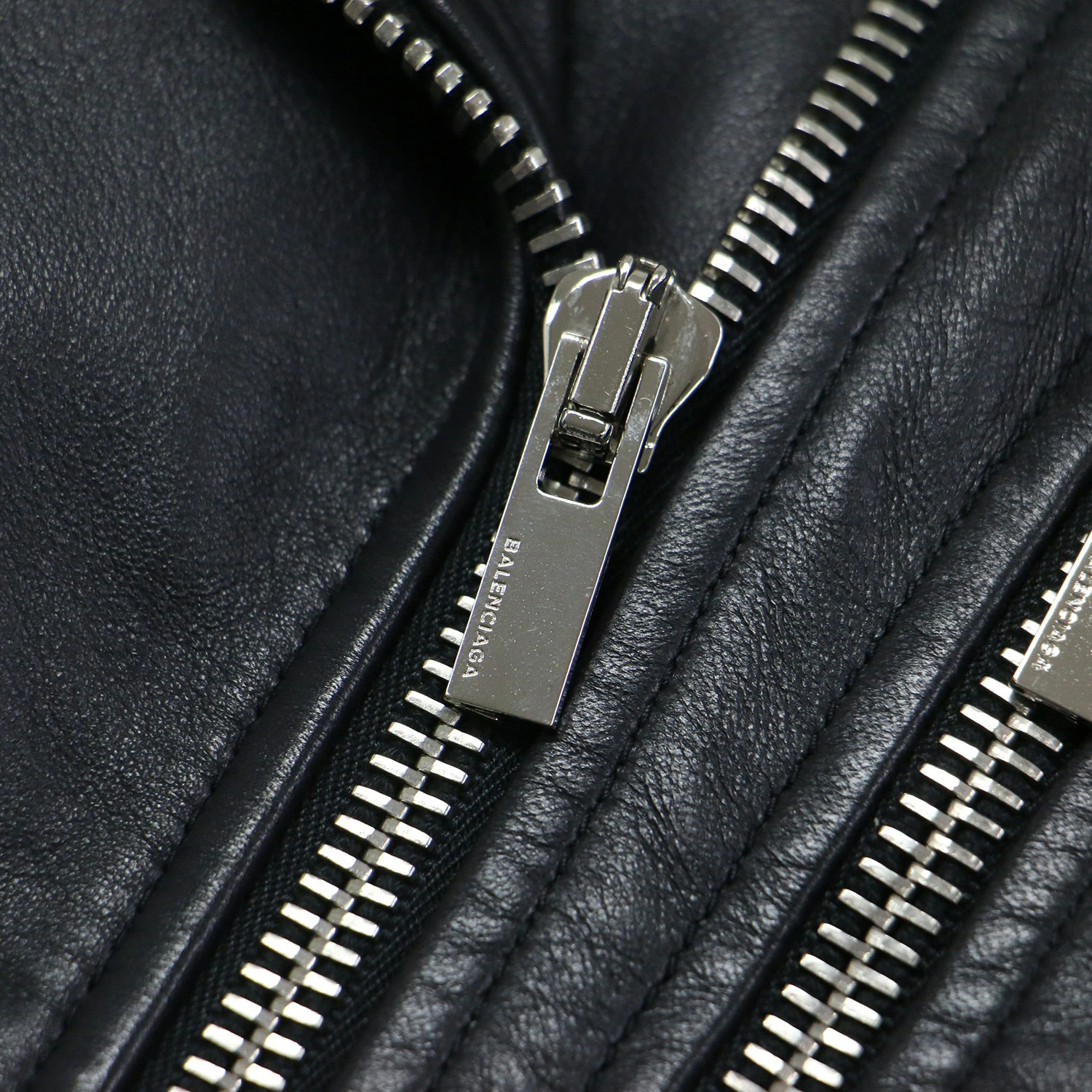 | 商品説明 | ◆シャープで洗練されたダブルブレストデザイン、バレンシアガらしい構築的なカッティングが特徴 ◆シルバーまたはブラックの重厚なジッパーやスナップボタンなど、細部にまでこだわったメタルパーツがモードなアクセント ◆トレンドに左右されないライダースジャケットを、バレンシアガの上質な素材と現代的なシルエットでアップデートした、一生もののステートメントアイテム