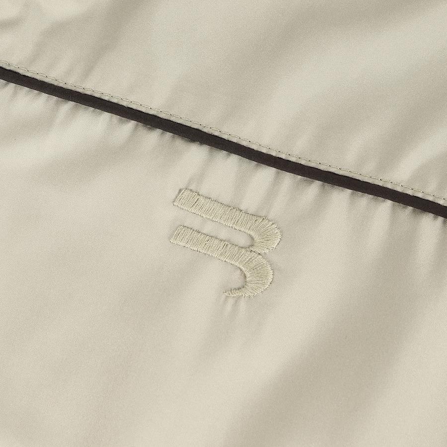 - ポリエステル生地を使用し、フルジップで仕上げたハイネックトラックジャケットです。左胸にBロゴ刺繍をデザインしています。チェストからショルダーにかけたパイピングラインがポイントです。ライナーは通気性のよいメッシュ仕様となります。