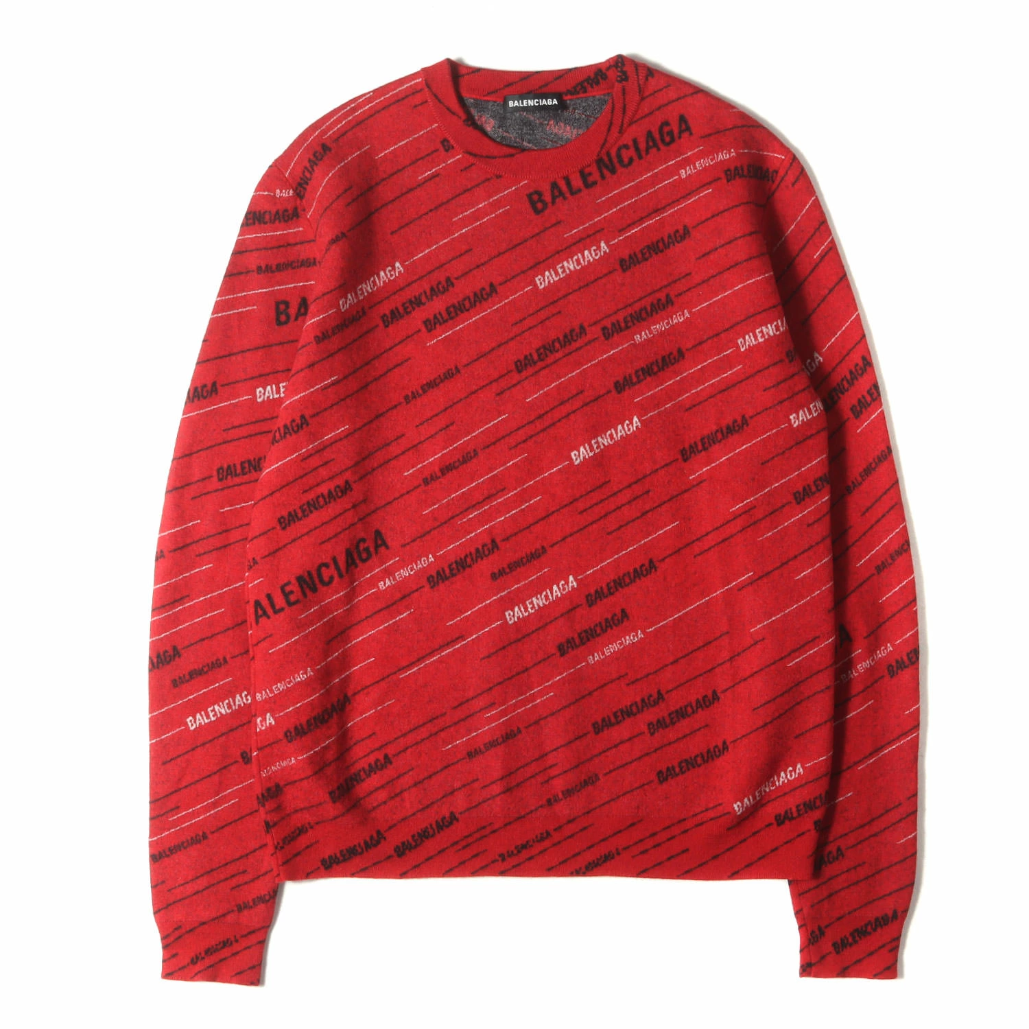 - ウール混紡生地を使用し、クルーネックで仕上げたミドルゲージニットです。全体にブランドロゴを落とし込んだ人気デザインです。