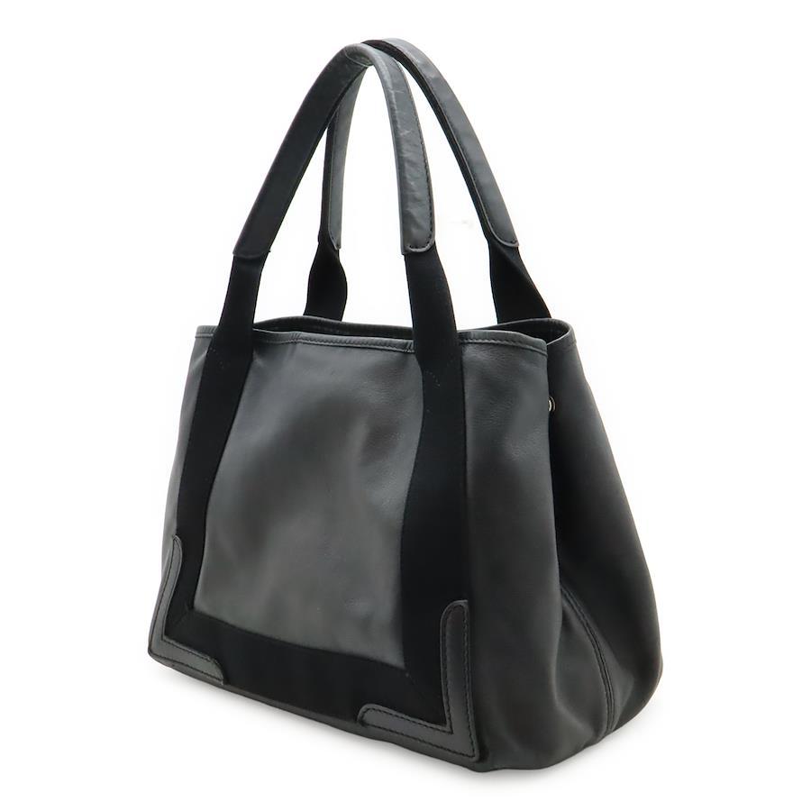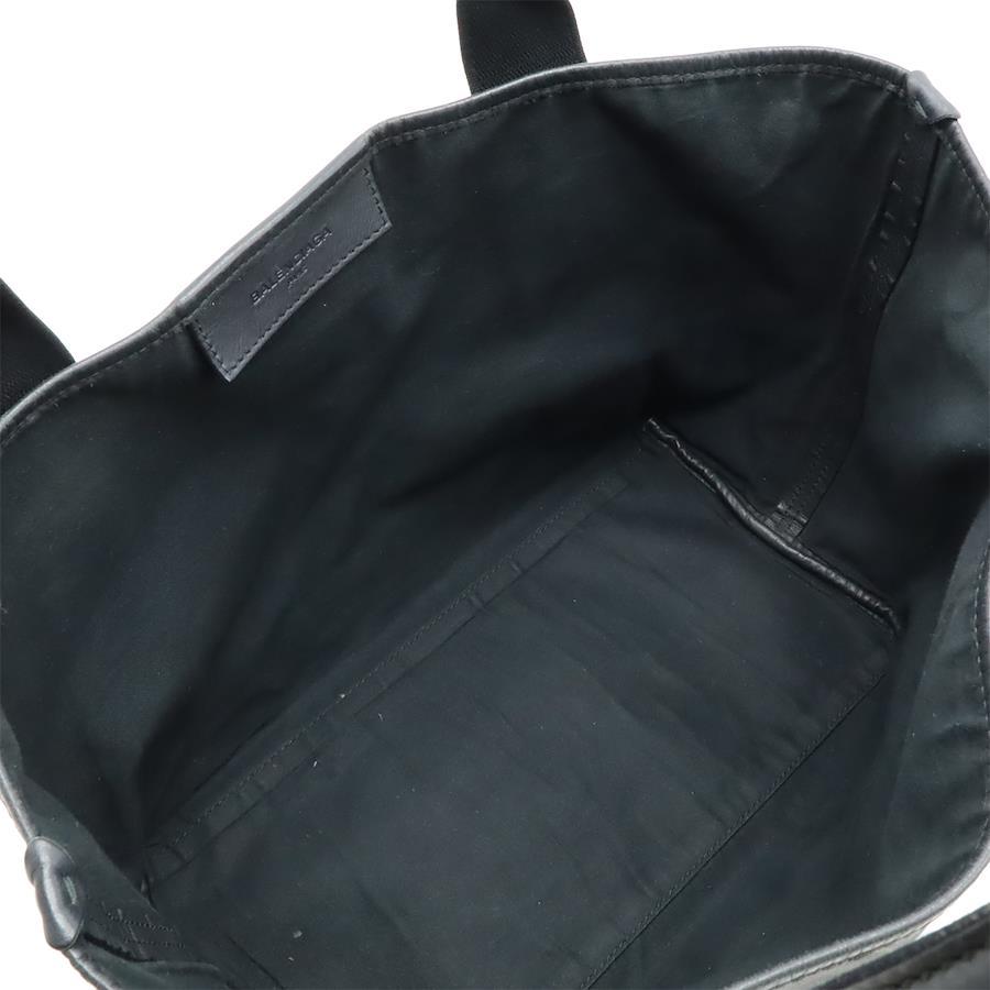 BALENCIAGA Navy Cabas S Tote Bag, Handbag with Perforated Logo, Black Leather, and Pouch, 339933
