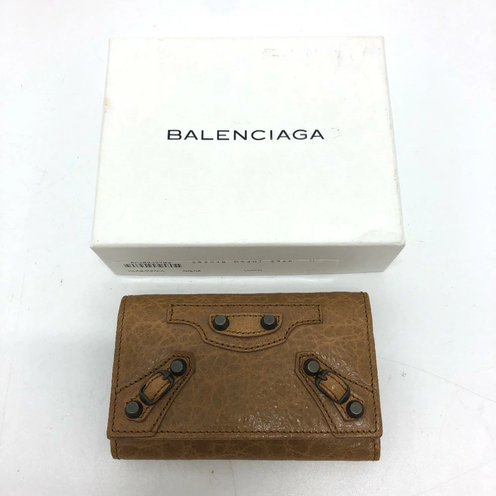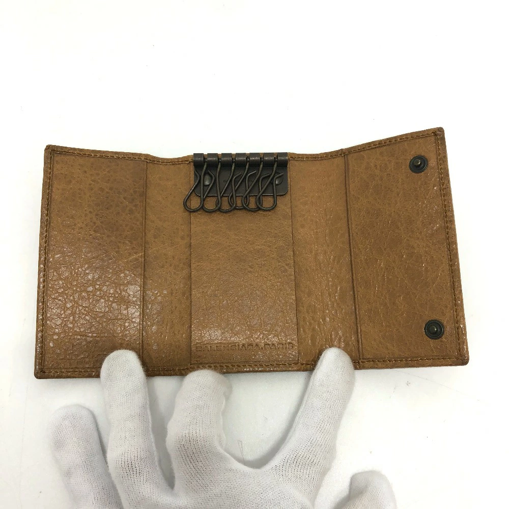 BALENCIAGA 253048 Studded Classic Osaka 6-Ring Key Case, Leather, Unisex, Brown [Pre-owned]