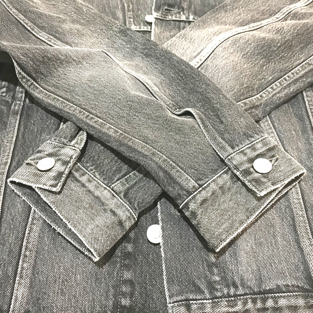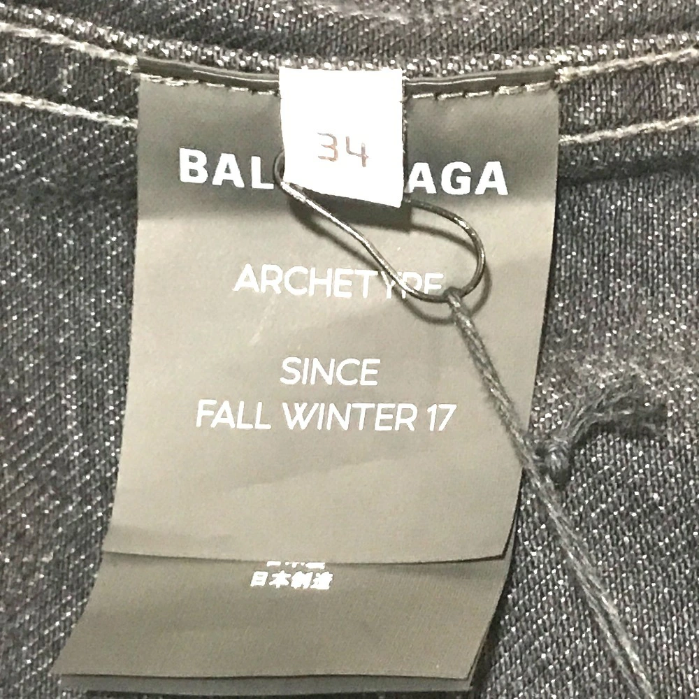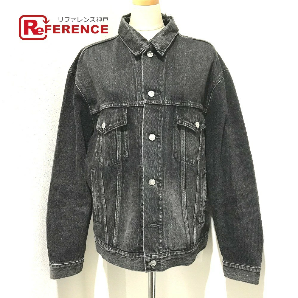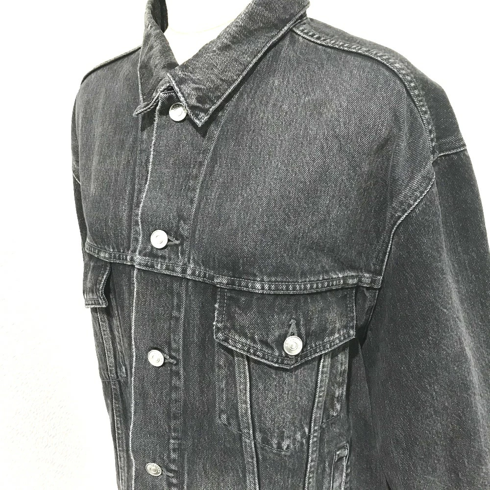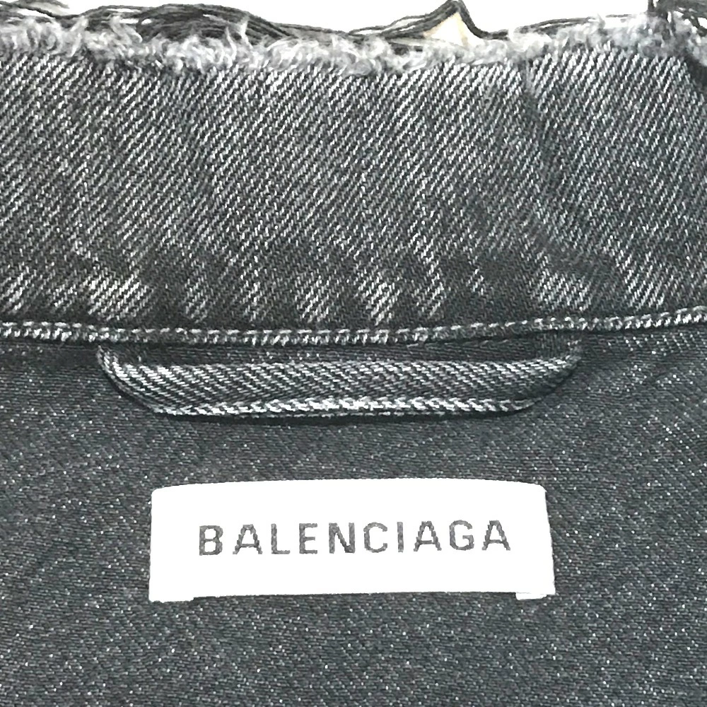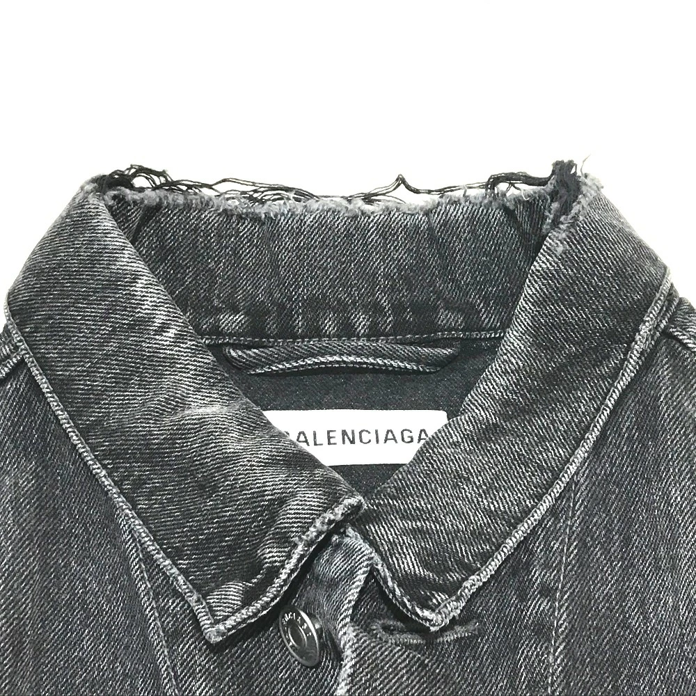 BALENCIAGA 529177 with tags, logo and strass accents, 18AW denim jacket, cotton denim, unisex, gray, like new [pre-owned]