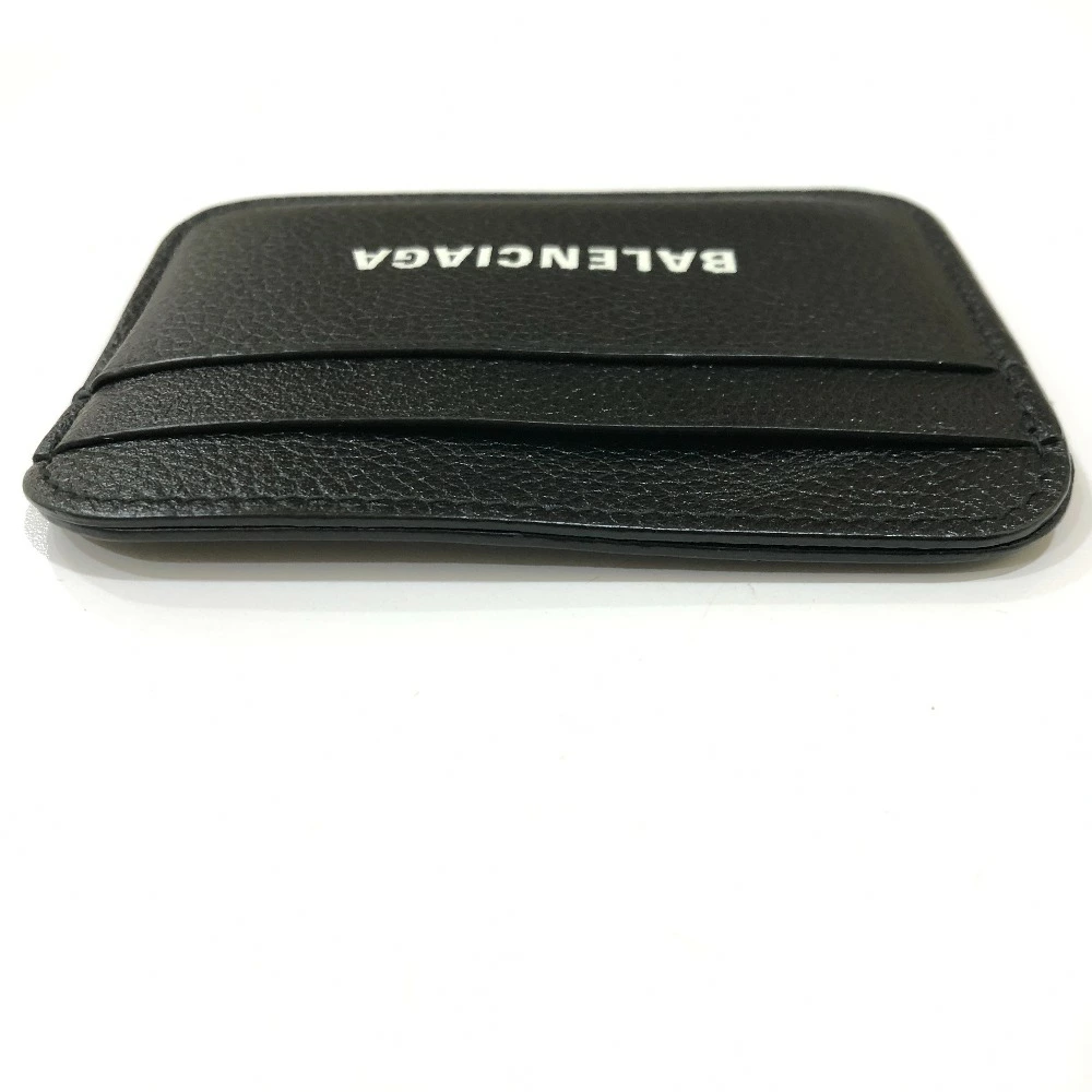 BALENCIAGA 593812 Logo Flat IC Case, Business Card Case, Leather, Women's, Black [Pre-owned]