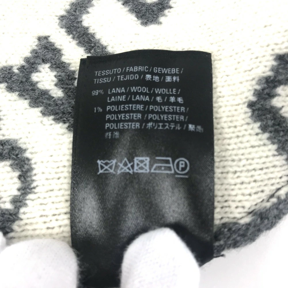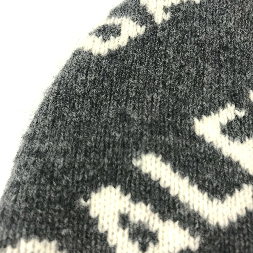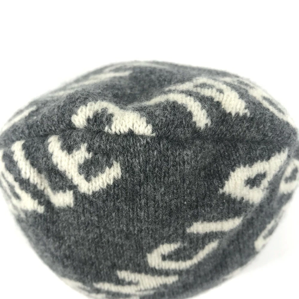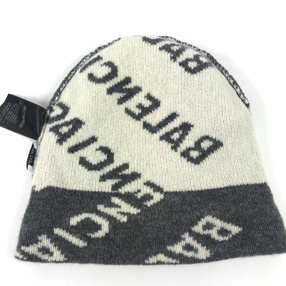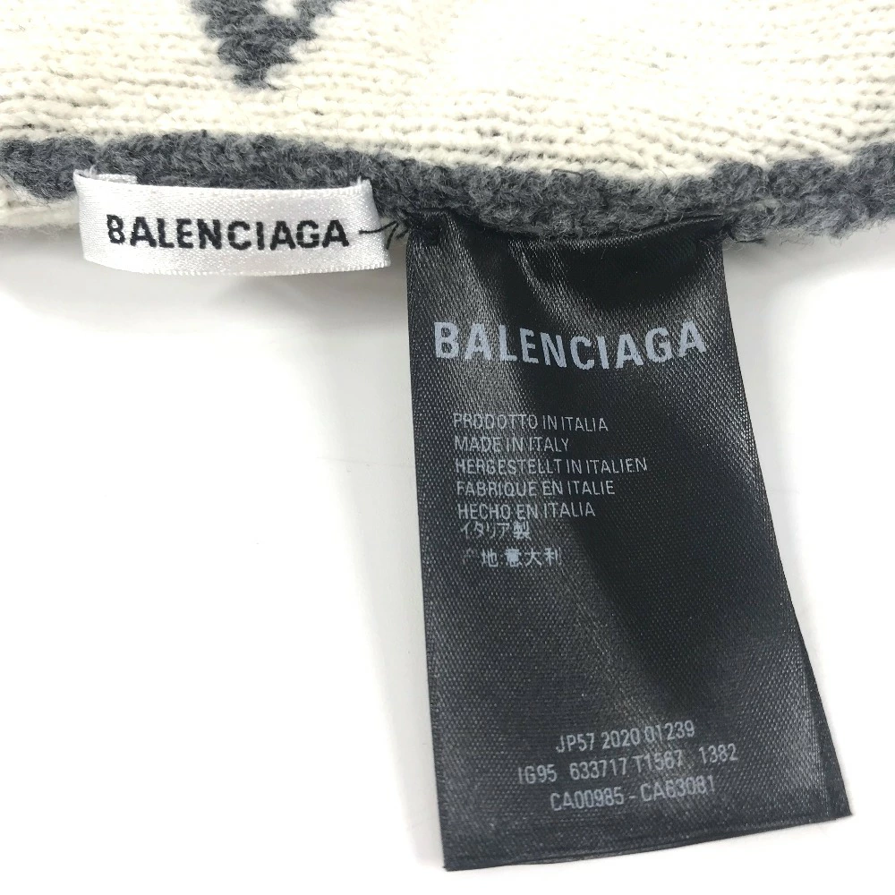 BALENCIAGA 633717 Beanie, Knit Cap, All-Over Logo, Wool/Polyester, Unisex, Gray, Pre-Owned