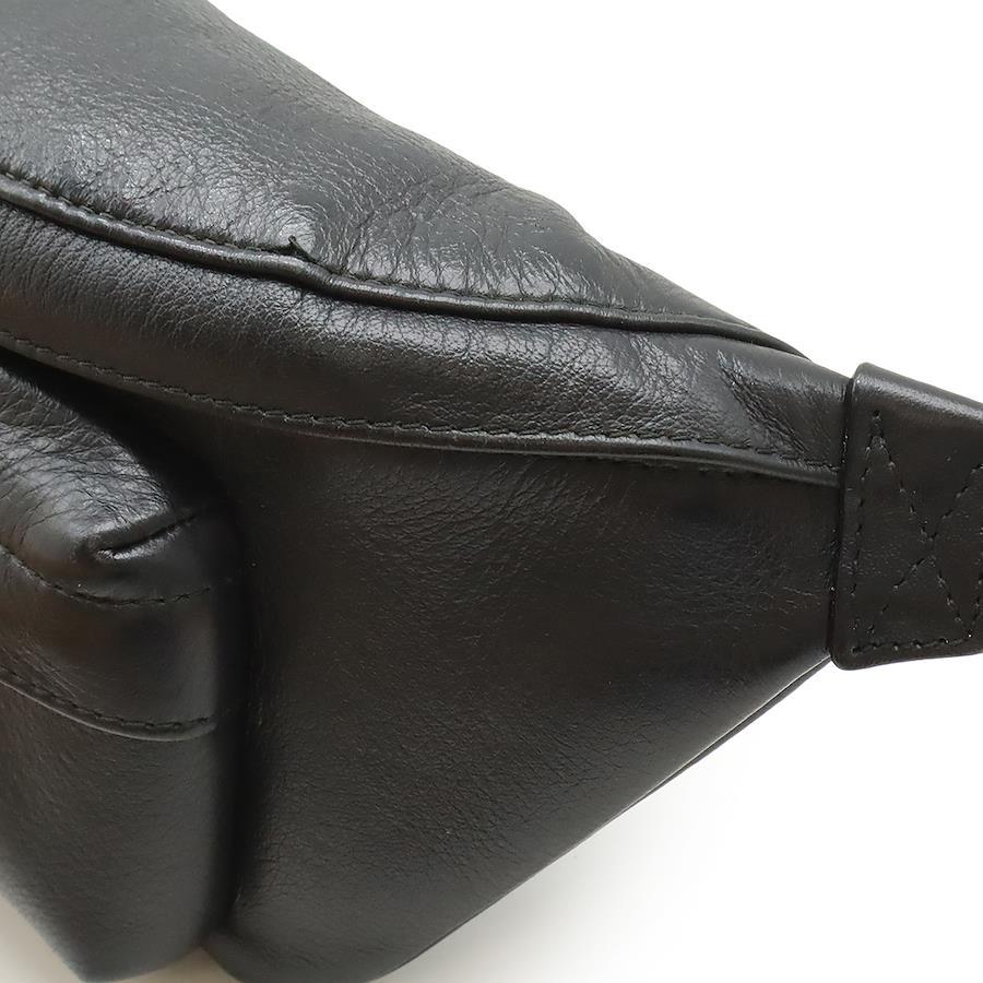 シンプルなシルエットながらも、ブランドロゴと素材の上質さが高級感を漂わせるボディバッグでございます。