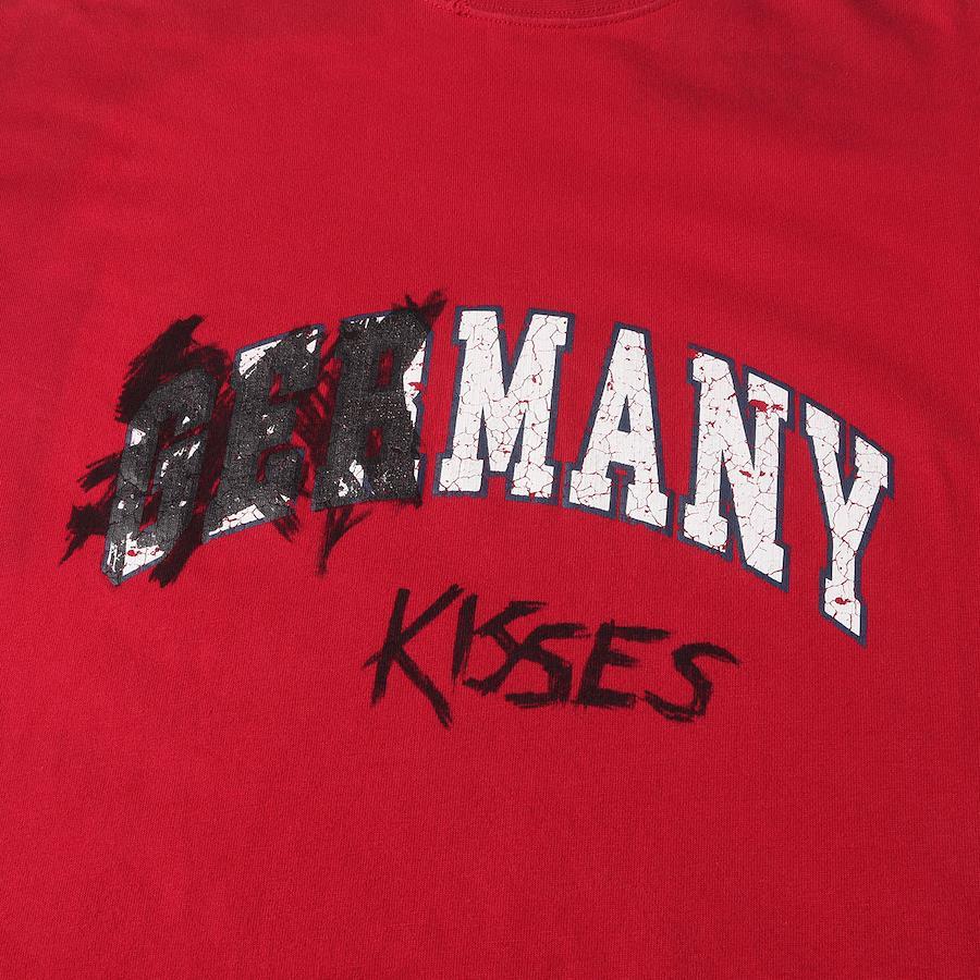 | 商品説明 | 2023年春夏コレクションのアイテムです。黒塗りにより「MANY KISSES」とレターロゴをあしらった洒落の利いたデザインです。プリントにひび割れ加工、ボディにダメージ加工を施しています。 |