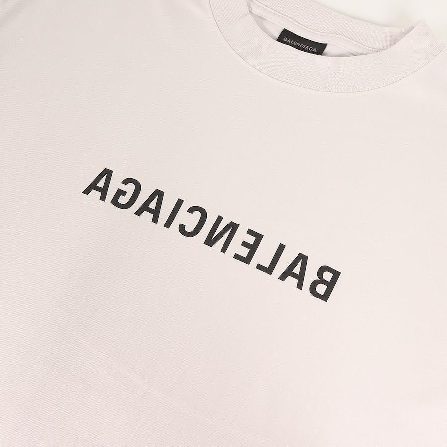 BALENCIAGA Light Beige T-Shirt, Size: XL | 2023 AW Inverted Mirror Logo Crew Neck T-Shirt (MIRROR LOGO T-SHIRT 764235 TNVR2) | Men's Short Sleeve Top, Pre-owned, Like New, K4615