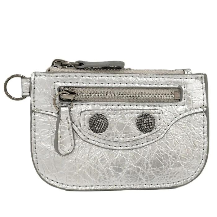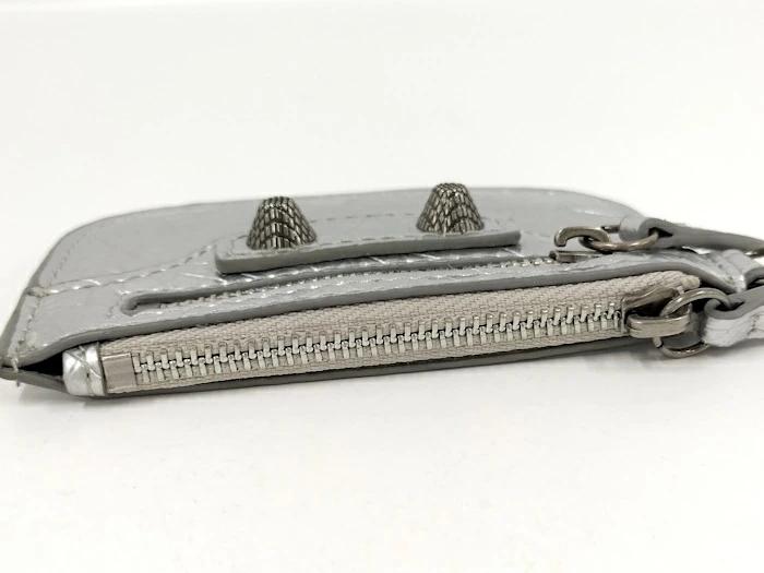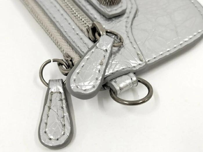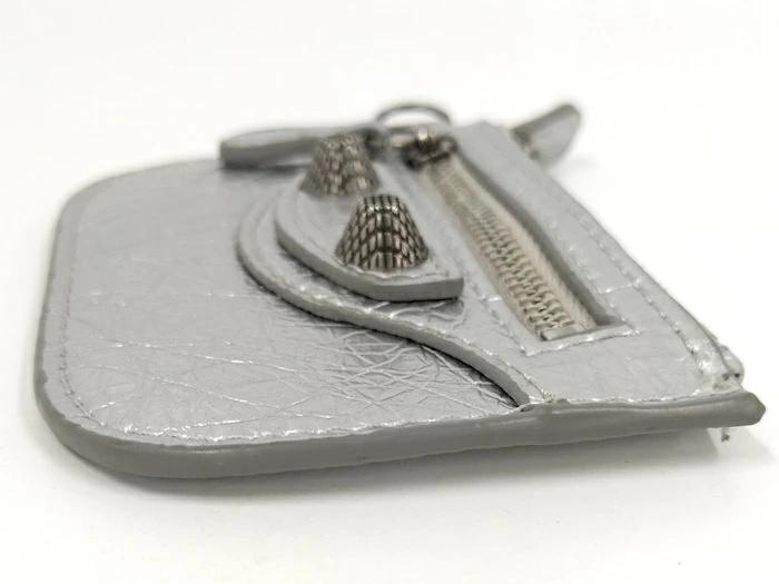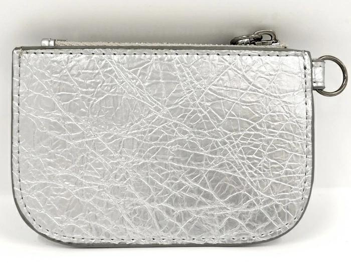 [商品情報]・カラー:シルバー・素材/ライン:レザー・サイズ:最大約 W11×H7(cm)・ファスナーポケット×1