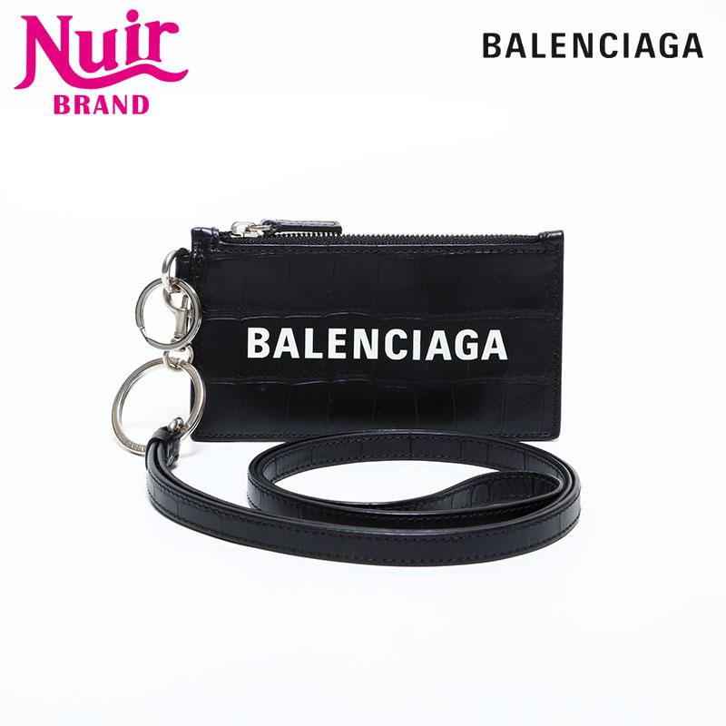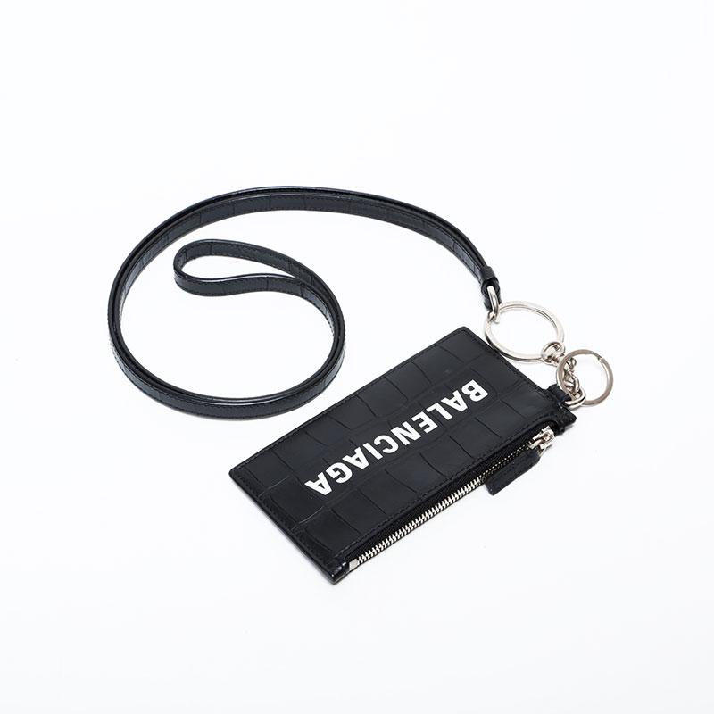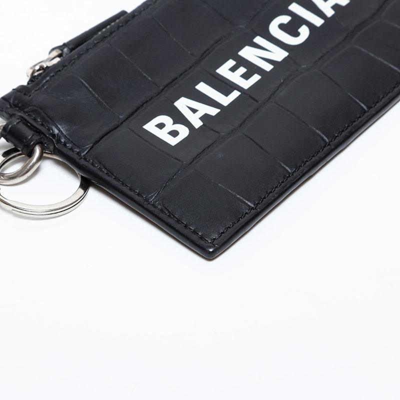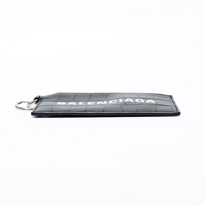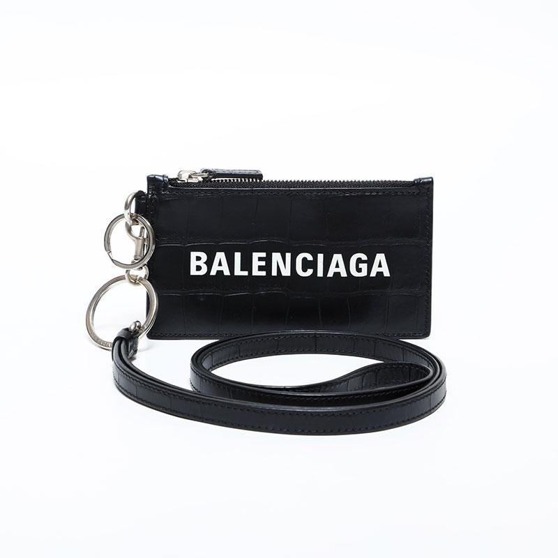 BALENCIAGA Leather Embossed Logo Cash Key Ring Card Case, Black, WS22387