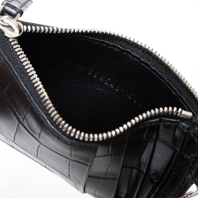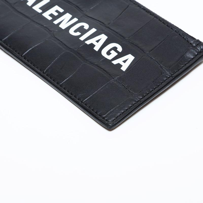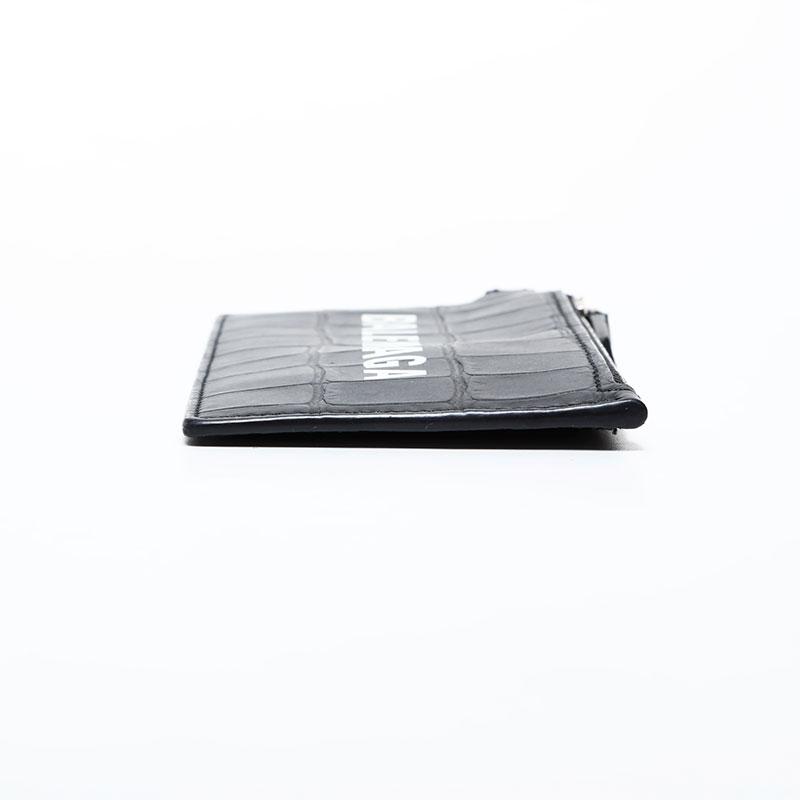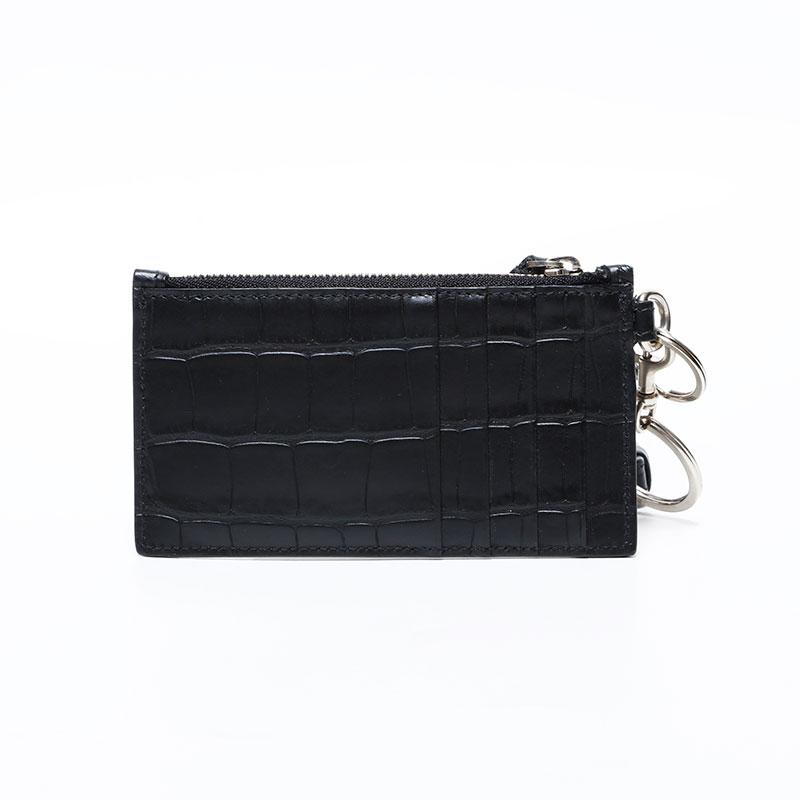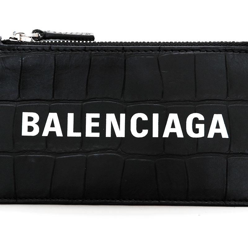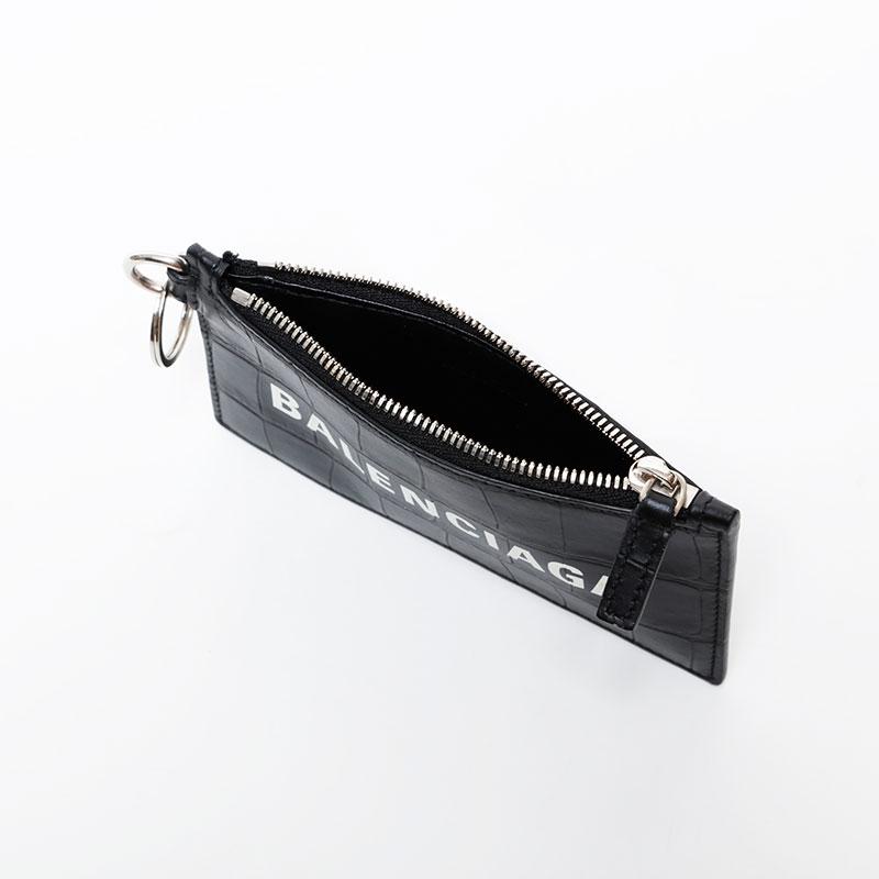 BALENCIAGA Leather Embossed Logo Cash Key Ring Card Case, Black, WS22387