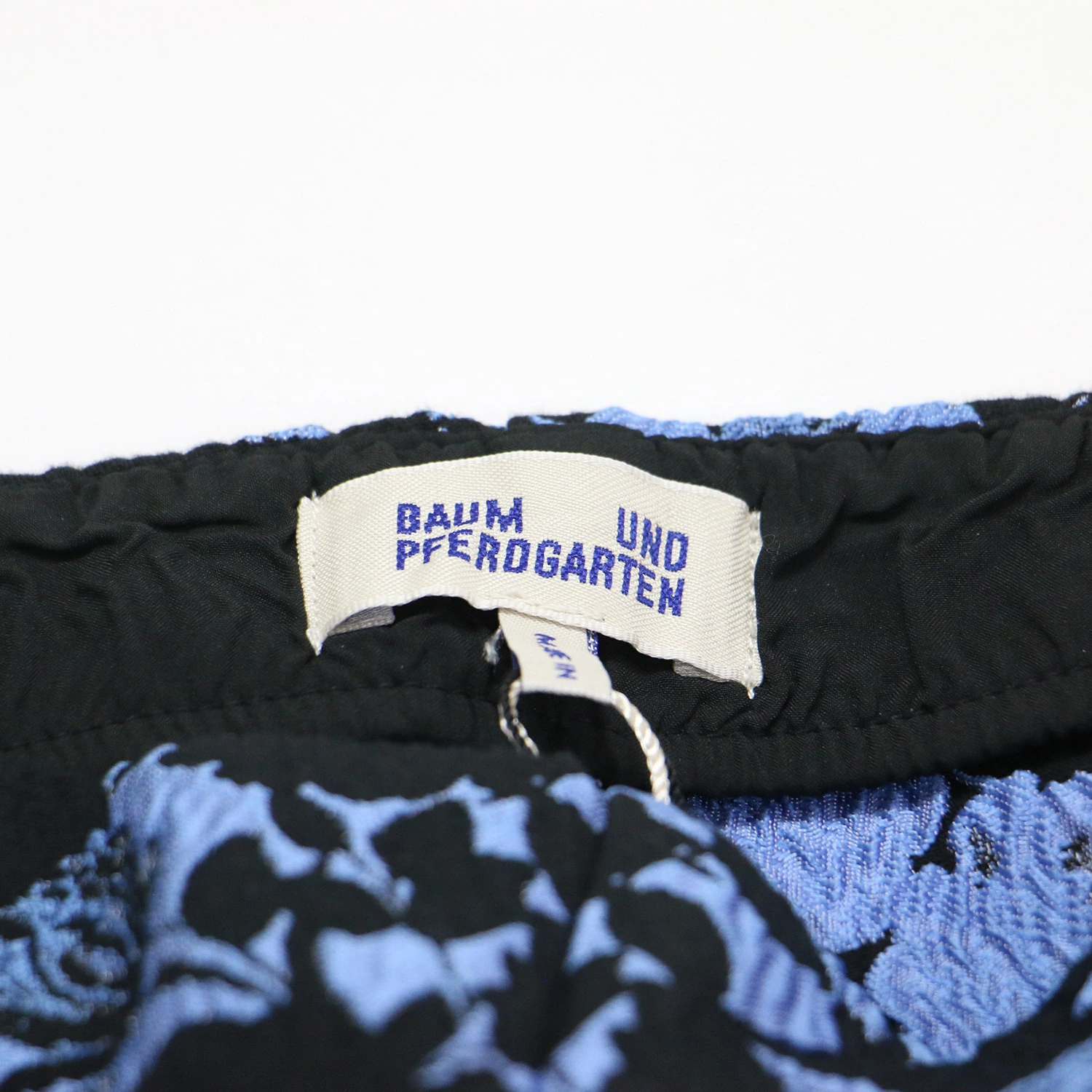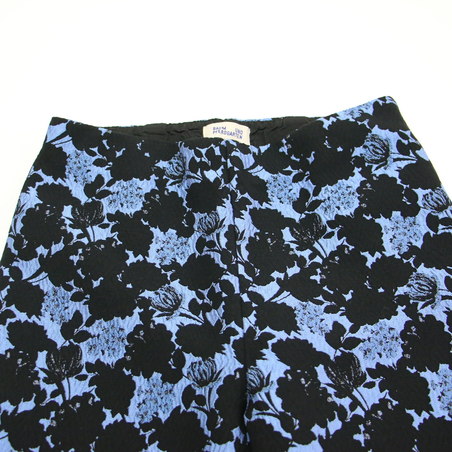 BAUM UND PFERDGARTEN Pants in Blue and Black, Size 34 (S) | Spring/Summer 2024 Floral Jacquard Flared Pants | Elastic Waist, Floral Print | Women's Bottoms, Pants [K4619]