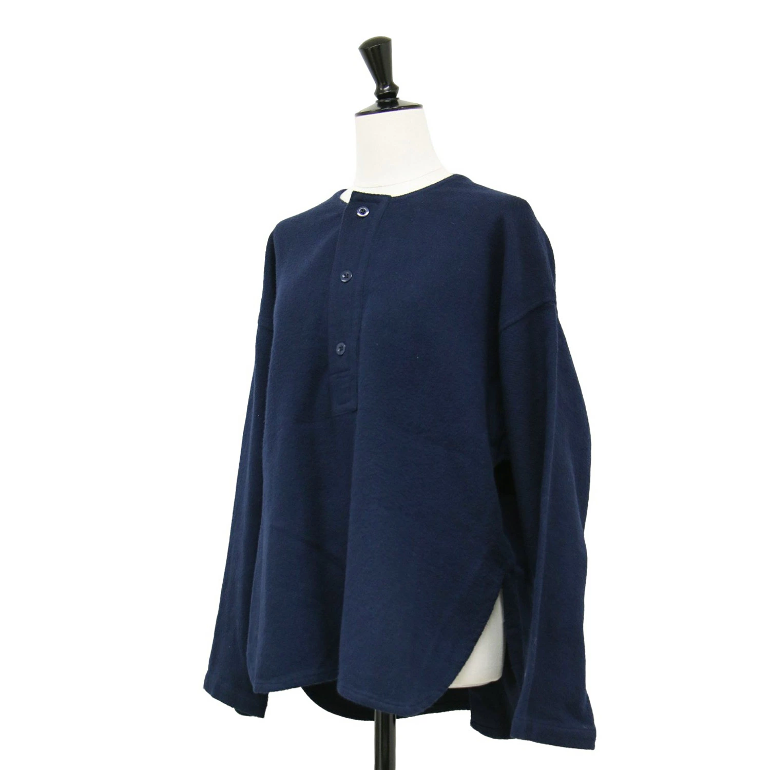 BEAMS BOY navy shirt, size: FREE / Fall/Winter 2020 brushed twill henley neck long sleeve shirt / long sleeve crew neck cotton / top blouse cut and sew [Women's] [Pre-owned] [K4616]