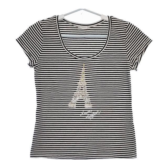| アイテム | 半袖Tシャツ カットソー エッフェル塔 スパンコール ボーダー |