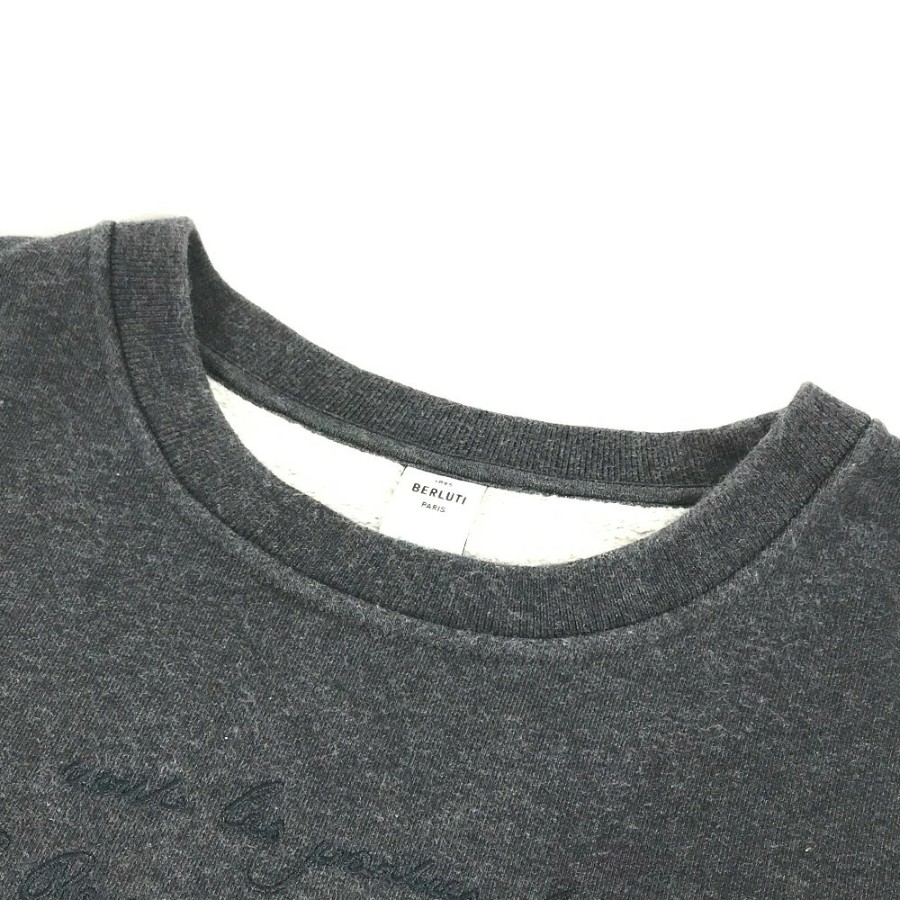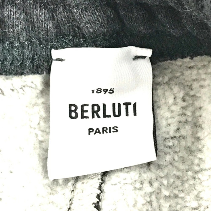 Berluti Men's Long-Sleeve Top and Bottoms Set - Logo Calligraphy Sweatshirt, Hoodie, Pullover, Cotton, Gray (Used)