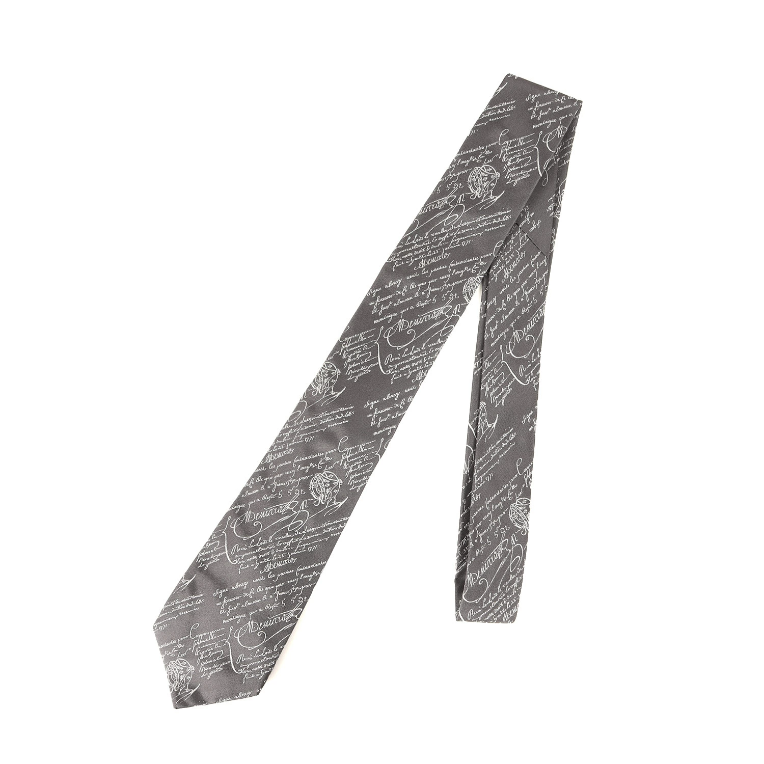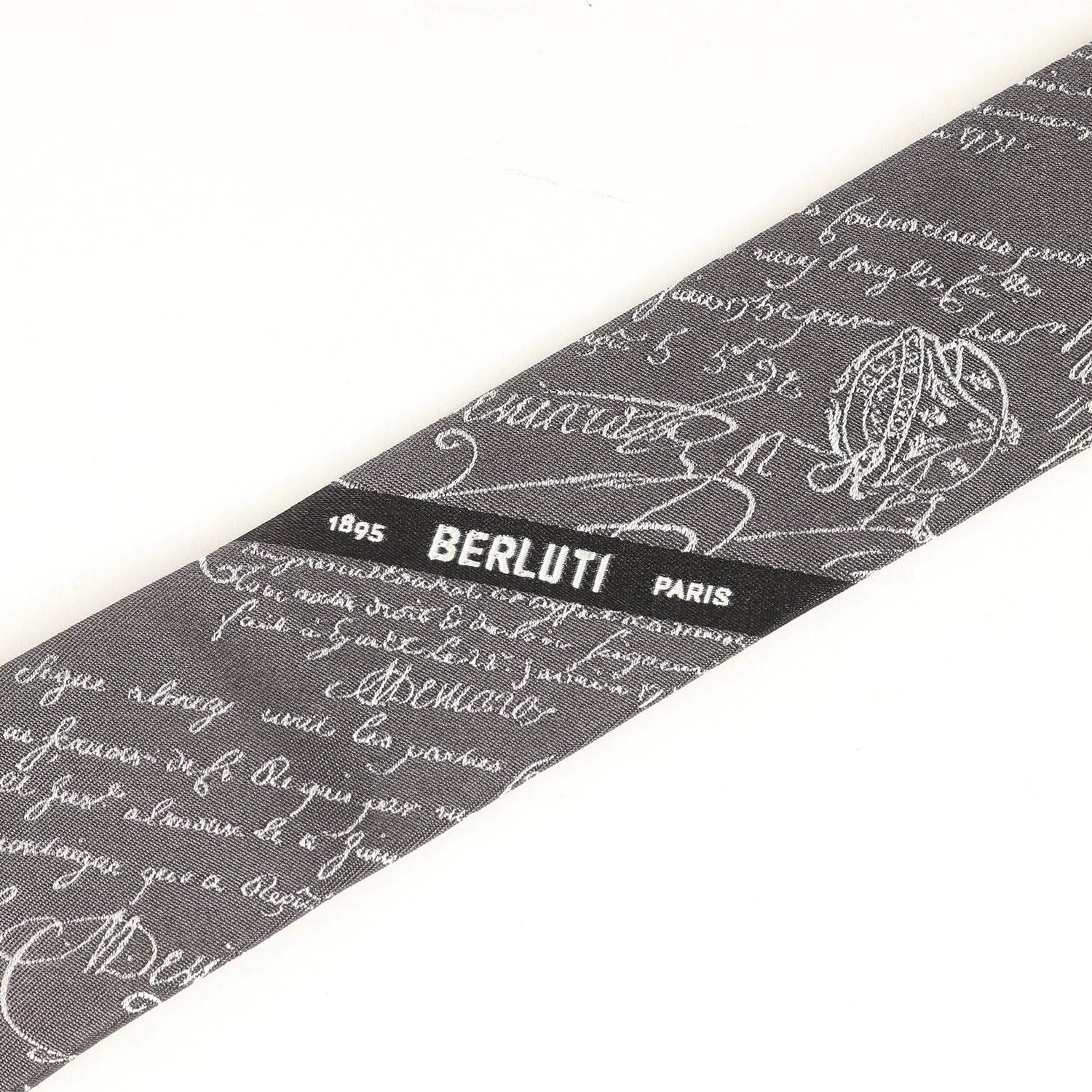 Berluti Tie | Recent Model | Scritto Silk Tie | Made in Italy with Calligraphy | Gray | Brand Name Fashion Accessory [Men's] [Pre-owned] [Excellent Condition] [K4618]