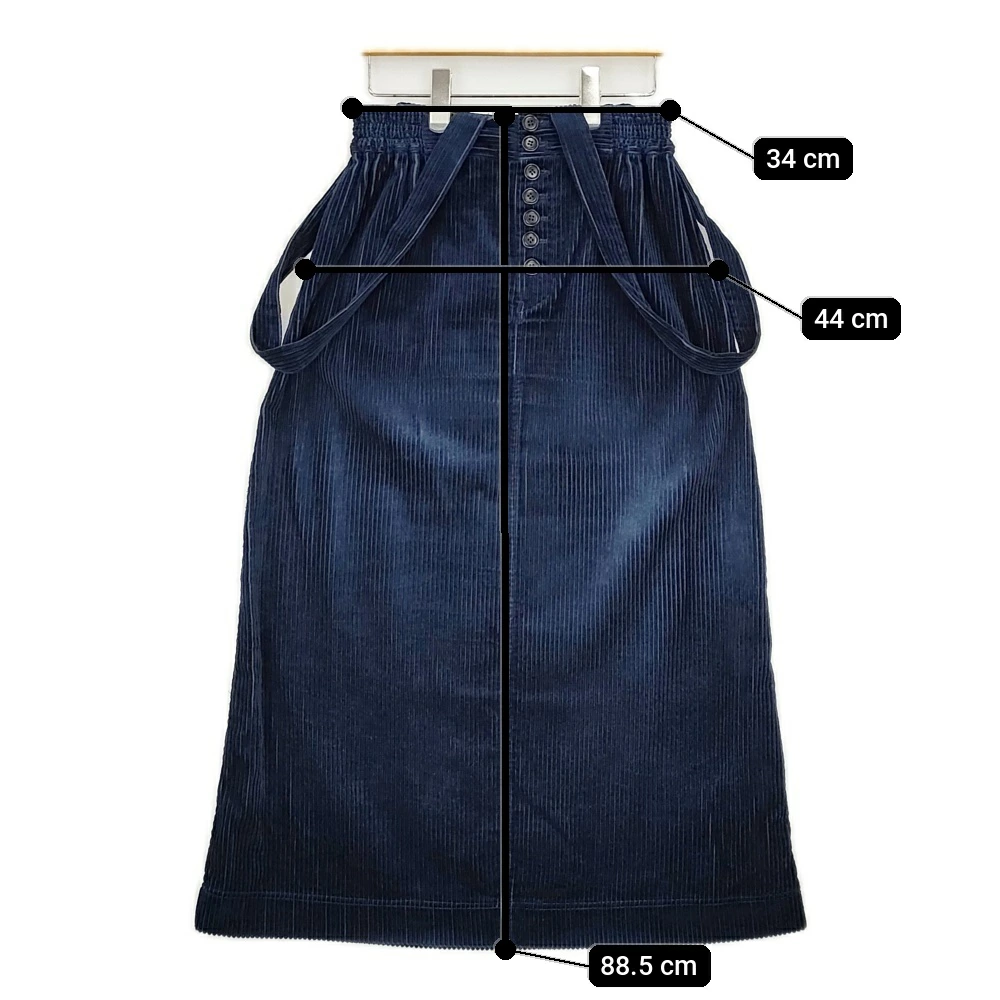 Bilitis dix-sept ans 2912-372 Jumper Skirt, Corduroy with Suspenders, Size 36, Cotton Long Skirt, Navy, Women's, Bilitis di Settan [Pre-owned], 5-1111T