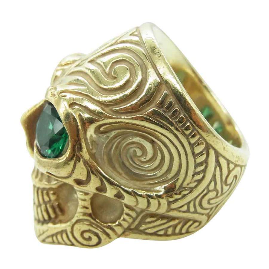 | 商品名 | TRIBAL GRAFFITI MASTER SKULL トライバルグラフィティ マスタースカル リング w/ストーンアイ ゴールドコーティング スターリングシルバー |