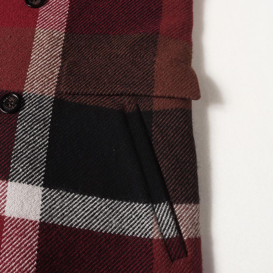 | 商品説明 | ビッグチェック柄のメルトンウールを使用した、ダブルブレストボタンのチェスターコートになります。 |