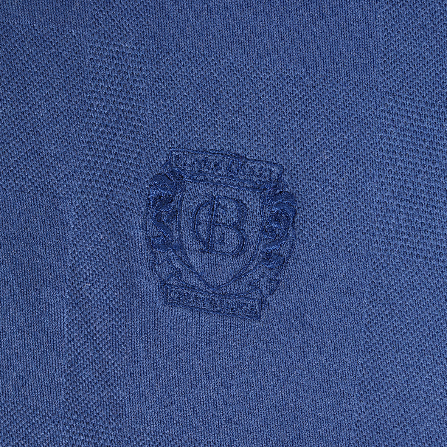 - シャドーチェック柄があしらわれたコットン生地を使用し、ワンポイントエンブレム刺繍が配されたポロシャツです。