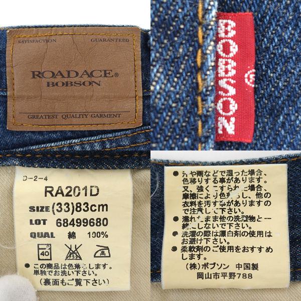 ・メーカー :BOBSON ROADACE / ボブソン・製品型番 :RA201D・サイズ :表記サイズ:W33,ウエスト (約cm):84,太腿幅 (約cm):31.5,股上 (約cm):30,股下 (約cm):69,裾幅 (約cm):21,・色(柄)の系統:ネイビー・デザイン :(メンズ)ボトムス/デニム・ジーンズ・ジーパン・素材 :綿100%