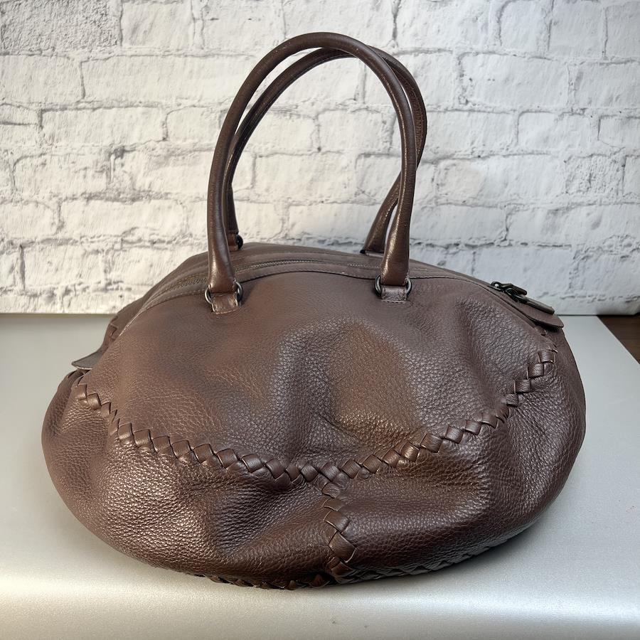 【アイテム】良品 BOTTEGA VENETA ボッテガイントレチャート ハンドバッグ ブラウン A-9441