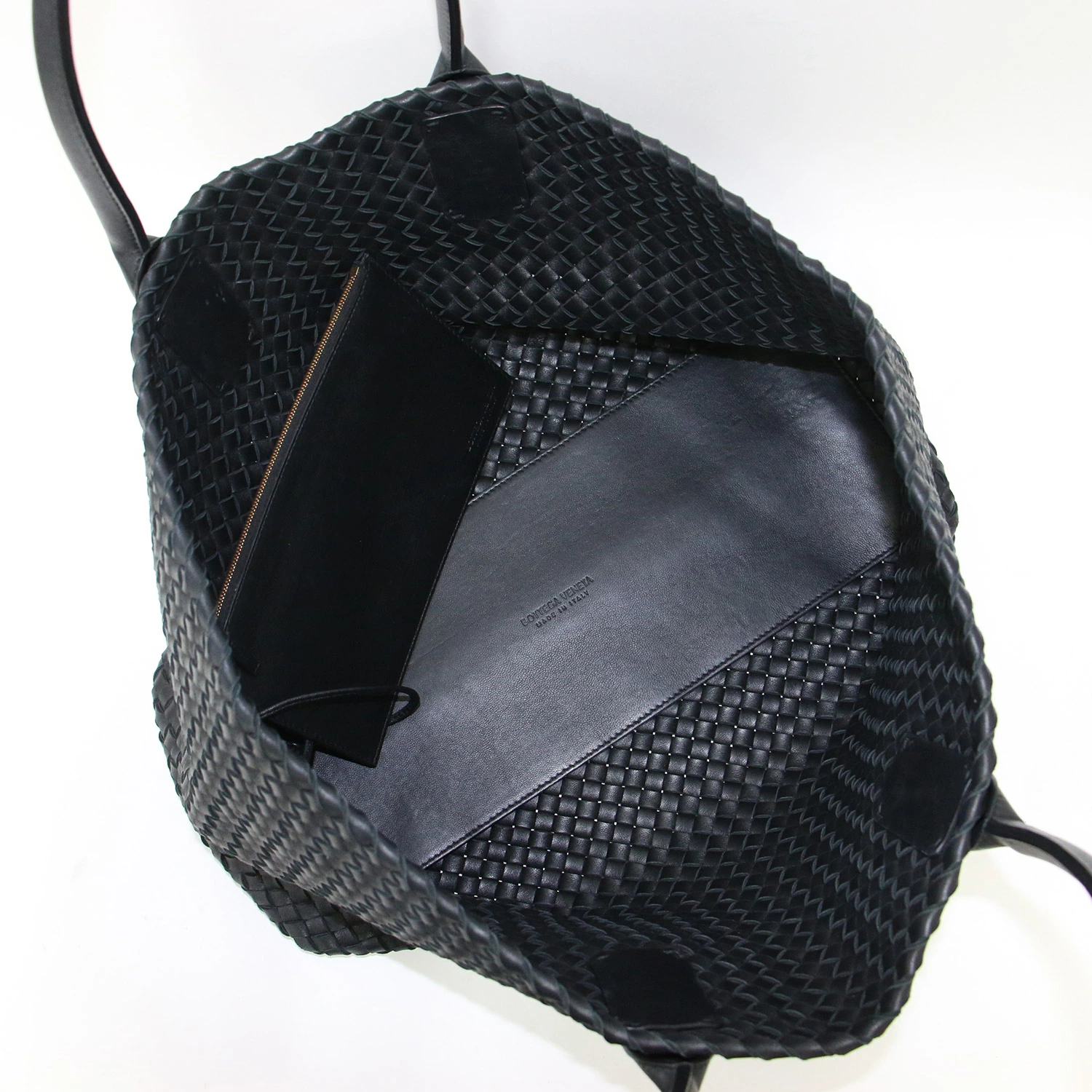 BOTTEGA VENETA Black Intrecciato Cabas Medium Tote Bag/Handbag | Gold Hardware, Lambskin, Shoulder Bag | Made in Italy | Designer Bag [Women's] [Pre-owned] [K4657]