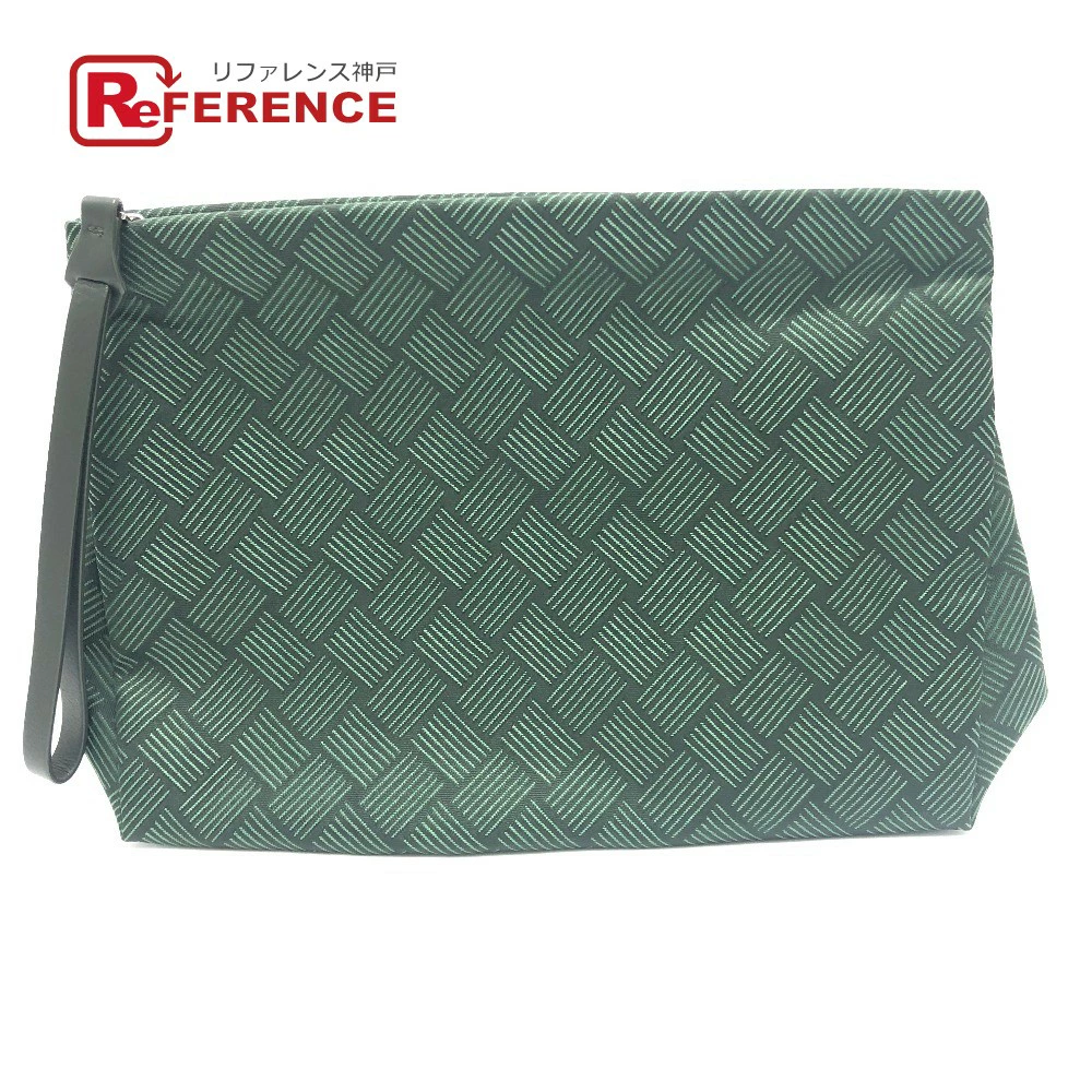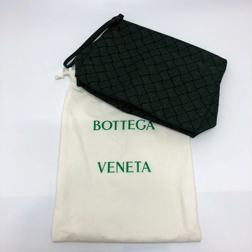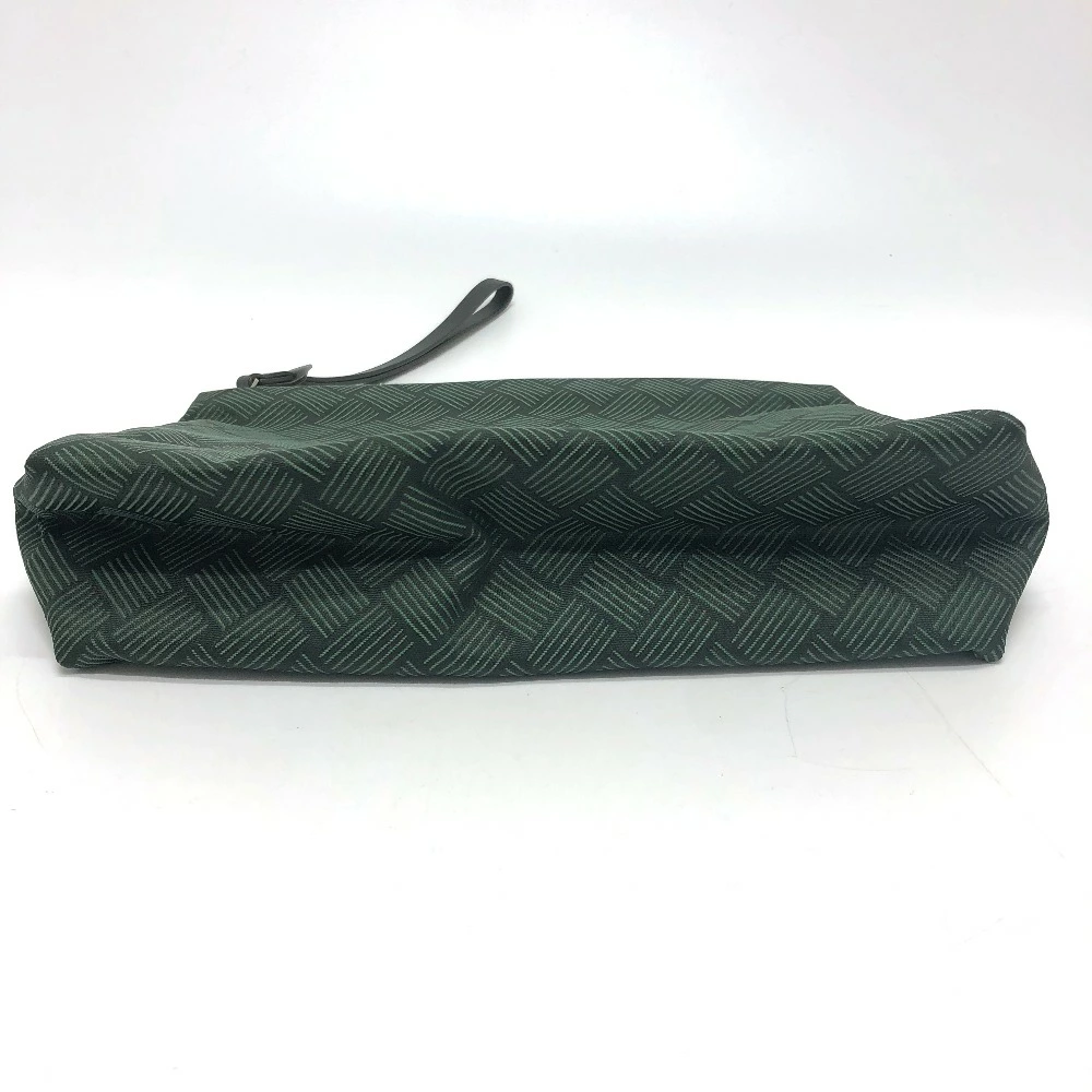 Pre-owned Bottega Veneta all-over intrecciato pouch with strap, women's green canvas clutch bag.