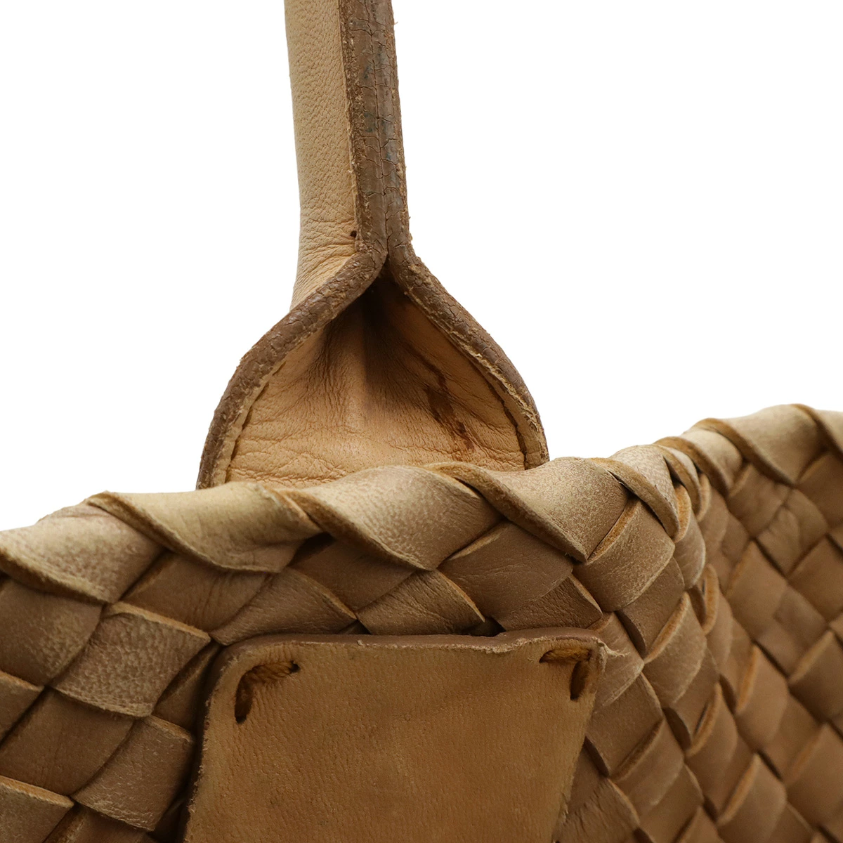 柔らかなレザーを格子状に編みこんだ独特のデザインが人気のイントレチャートのトートバッグでございます。