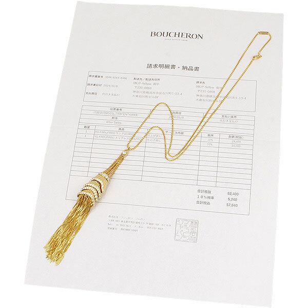 Category: JewelryType: NecklaceBrand: BoucheronChain Length: 55cmHead Size: 18.7 x 121.6 x 13.7mmGemstone: DiamondStamp: BOUCHERON OR750 E3****Weight: 43.7gMaterial: 18K Yellow Gold (18K Yellow Gold)List Price: UnknownAccessories: Original box and repair detailsCondition: A