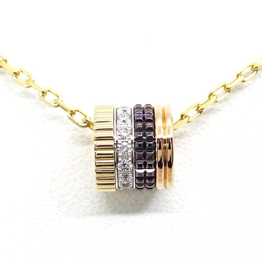 Product Rank: AProduct Condition: There are very slight scratches that are hard to see with the naked eye, but no noticeable damage and the item is in very good condition.To maintain its proportions, we do not polish it to like-new condition, but we do ultrasonically clean it in-store.While we take great care, as this item was displayed in-store, very slight scratches may occur.Please review the images and feel free to contact us with any questions.*The texture and color may appear different from the actual product depending on the shooting environment and your monitor settings.Brand: BOUCHERONProduct Name: QUATRE CLASSIQUEQUATRE Classic Pendant Large NecklaceModel Number: JPN00669Serial No.:Stamp:Material: 18K Yellow Gold (K18YG)18K White Gold (K18WG)18K Pink Gold (K18PG)Brown PVDStone: 0.24ct DiamondSee official websiteColor:Size: Necklace: Approx. 38cmTop: Approx. 8.0mm W x 9.0mm HWeight: Approx. 8.0gSuggested Retail Price: ¥819,500See official websiteAccessories: Necklace only