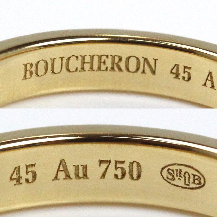 Brand: BoucheronProduct Name: QUATRE Clou de Paris Medium RingType: Women'sModel Number: JAL00008Material: 18K Yellow GoldStamp: BOUCHERON・Au750・45Ring Size: Approx. 5 (Stamped Size #45)Top Width: Approx. 2.7mmBottom Thickness: Approx. 1.8mmJAPAN: 5EU: 45US: 3.5Country of Origin: FranceWeight: Approx. 3.1gAccessories NoneJapan suggested retail price: ¥277,200 (tax included)Condition: Rank ASlight signs of use, but in good condition.Light finishing has been applied, but there are some light scratches that could not be removed. Please note that as this is a display item, there may be discoloration, minor wear, or minor scratches.