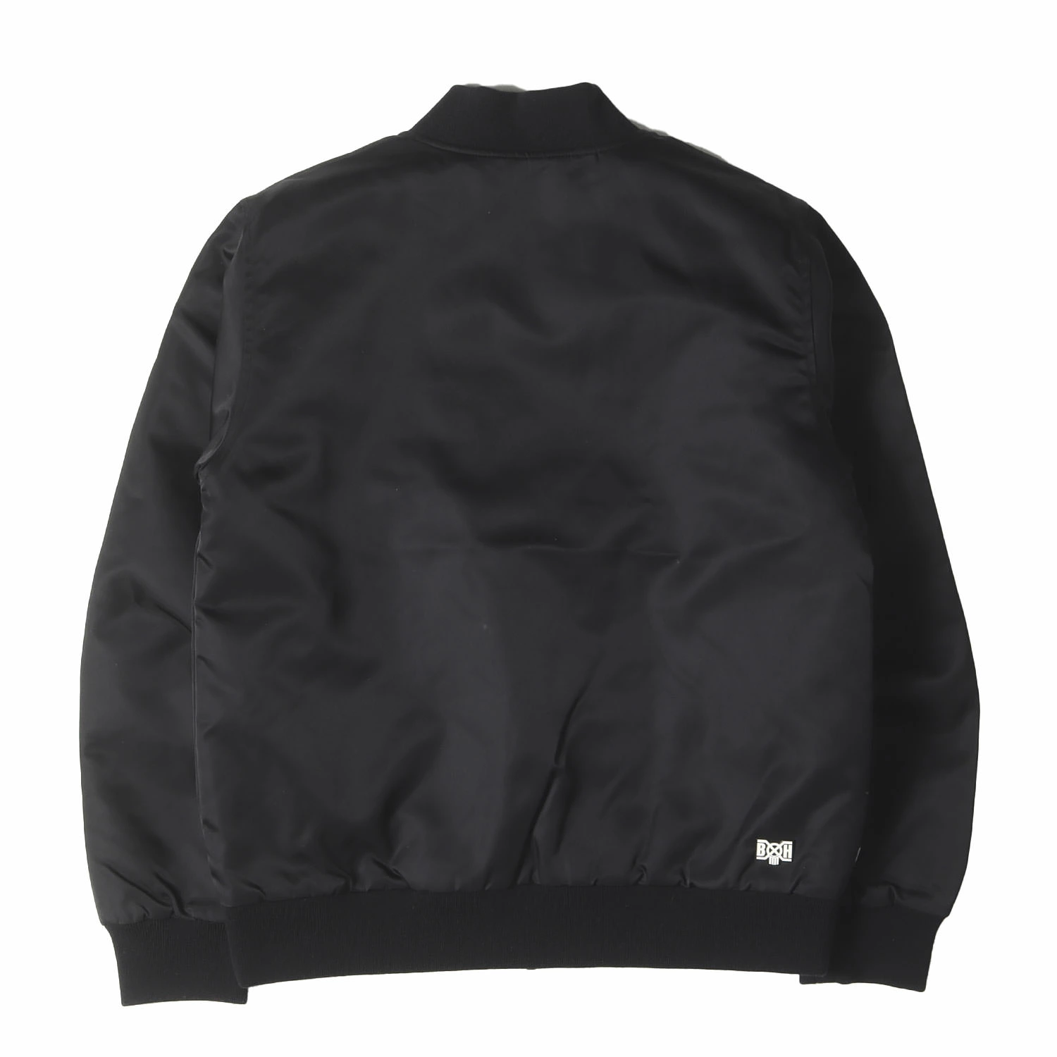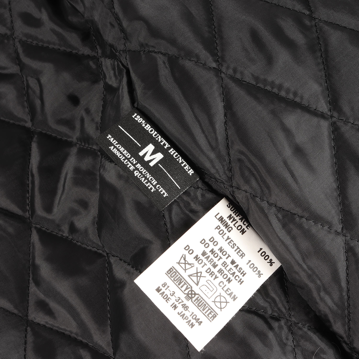 - ロゴワッペンをあしらった、裏地キルティングのナイロンジップスタジャンです。後ろ裾にセルフでピンズがデザインされております。