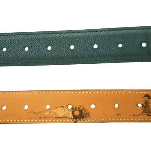 | コメント | HERMESの腕時計、ケリーやHウォッチなどに使用されている、バックル金具が目を惹く、HERMES カーフレザー ダークネイビー ベルト。 シンプルなデザインと、品の良いたたずまい。 着こなしのアクセントにどうぞ。 「ダークネイビー」はエルメスの公式カラーではございません。 見たままでお伝えすると、落ち着いた表情の暗めの紺色、「ダークネイビー」と言った様なお色です。 リバーシブルではございません。 バックルとベルト本体、取り外し不可。 長さカット不可。 |