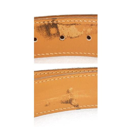 | 商品ランク | A 当店のお取り扱い商品は、全て真贋判定済みの本物保証になります。 本物(正規品)ですか?の質問にはスルーさせて頂きます。 また、サイズが合わないや、イメージと違う等の返品は受け付けておりません。 コメント欄、商品説明を今一度ご確認いただき、ご検討をお願いいたします。 【バックル】 ・全体的に、細かな薄擦れあり。 【ベルト本体】 ・本来ベルト穴は5つですが、使用者により追加で2つ開けられております。小さく使用したかった様です。 ・直線に伸ばした際、腰部に若干カーブがかった様に、歪みあり。 ・ベルト本体縁(塗り)に、擦れあり。 ・ベルト穴、若干広がり、バックル跡あり。 ・ネイビーレザー表面、擦れや傷、汚れと言ったマイナス点はございません。 ・内側のベルト穴方向に、線状の擦れ、張り付き剥がし跡、黒い色移りがございます。 おそらく、他のベルト(黒色)が張り付いて、それを剥がした様な形跡となっております。 (他の部分にも、極薄っすらと黒い部分が数か所にあり。) ・ベルトループ留めに、ヨレあり。 ・内側の一部、マイナス点が目立っているものの、その他の部分につきましては、目立ったマイナス点はなく、コンディション良いです。 ・詳しくは画像をご参照ください。 ※商品確認には万全の注意を払っておりますが、記載しきれないダメージ等ある場合がございますので、中古品にご理解のない方はご遠慮下さいませ。 |