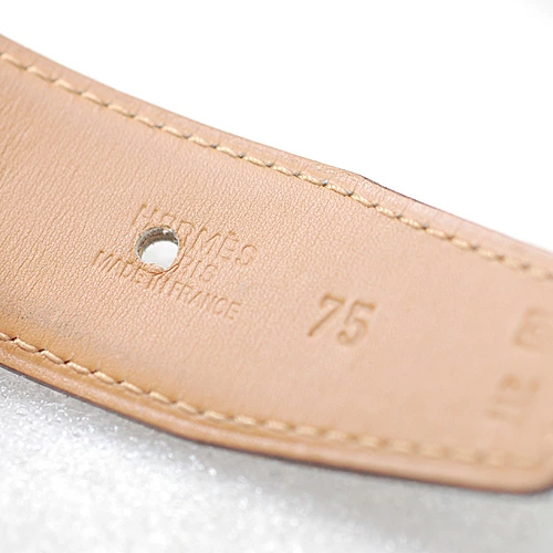 | コメント | HERMESの代表的なウォッチ「ケープコッド」のバックル金具が目を惹く、HERMES カーフレザー ベルト。 シンプルなデザインと、品の良いたたずまい。 着こなしのアクセントにどうぞ。 リバーシブルではございません。 バックルとベルト本体、取り外し不可。 長さカット不可。 |