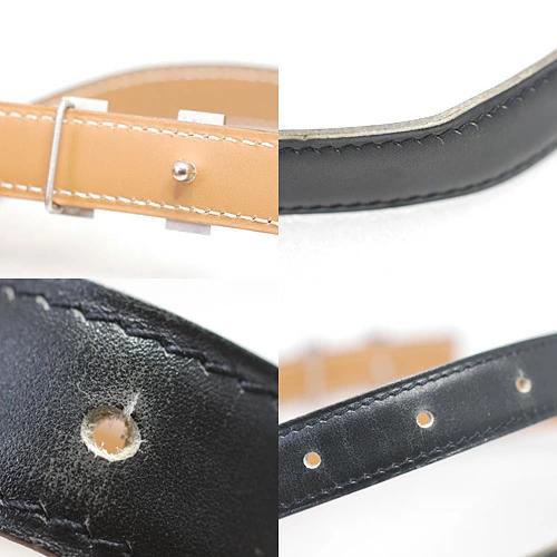 | 商品ランク | AB 当店のお取り扱い商品は、全て真贋判定済みの本物保証になります。 本物(正規品)ですか?の質問にはスルーさせて頂きます。 また、サイズが合わないや、イメージと違う等の返品は受け付けておりません。 コメント欄、商品説明を今一度ご確認いただき、ご検討をお願いいたします。 【バックル】 ・全体的に薄擦れ、擦れ傷、変色の様な、腐食気味箇所あり。 【ベルト本体】 ・直線に伸ばした際、軽く波を打った様な、ヨレあり。 ・ベルト縁(塗り)が、全体的に擦れております。 ・ブラック側、薄っすらとクスミ、シワ箇所、少々薄擦れ、ベルト穴に少々使用感あり。 ・キャメル系側、シワ箇所、薄っすらとクスミあり。 ・詳しくは画像をご参照下さい。 ※商品確認には万全の注意を払っておりますが、記載しきれないダメージ等ある場合がございますので、中古品にご理解のない方はご遠慮下さいませ。 |