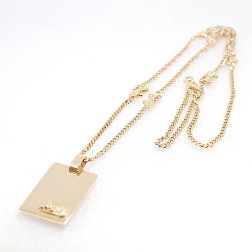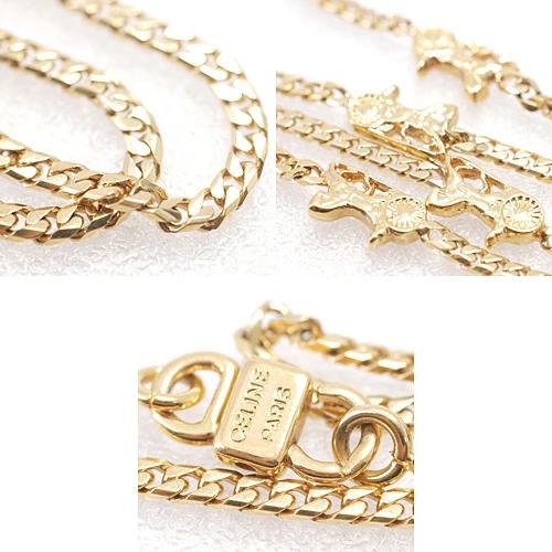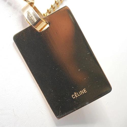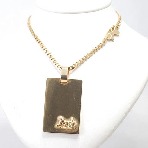 <br>Celine Vintage Horse Carriage Plate Tag Curb Chain Necklace Gold Color [Pre-owned]