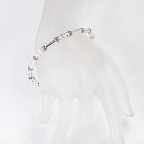 | コメント | ネイティブ・アートの「ZIG ZAG」をモチーフに、ビーズの様にシルバーパーツとヘマタイトを合わせた、繊細な職人技がうかがえる逸品。 カジュアルなTシャツや、マウンテンパーカー等、様々なスタイルに馴染み、手元から洗練さと力強さを感じさせます。 |
